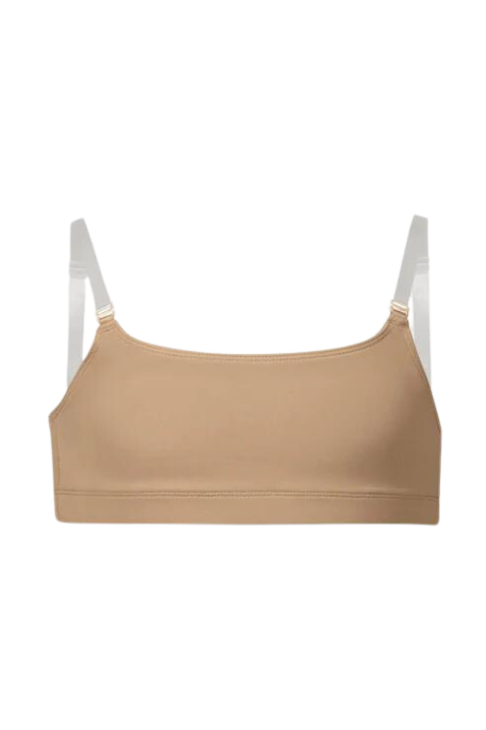 Our Girls Leia Crop Top features a scoop neck with clear adjustable camisole straps. Pair with our Girls High Waist Brief or Girls High Waist Short for the perfect underwear set. Part of our new Body Essentials collection; available in a range of tones to suit every dancer.