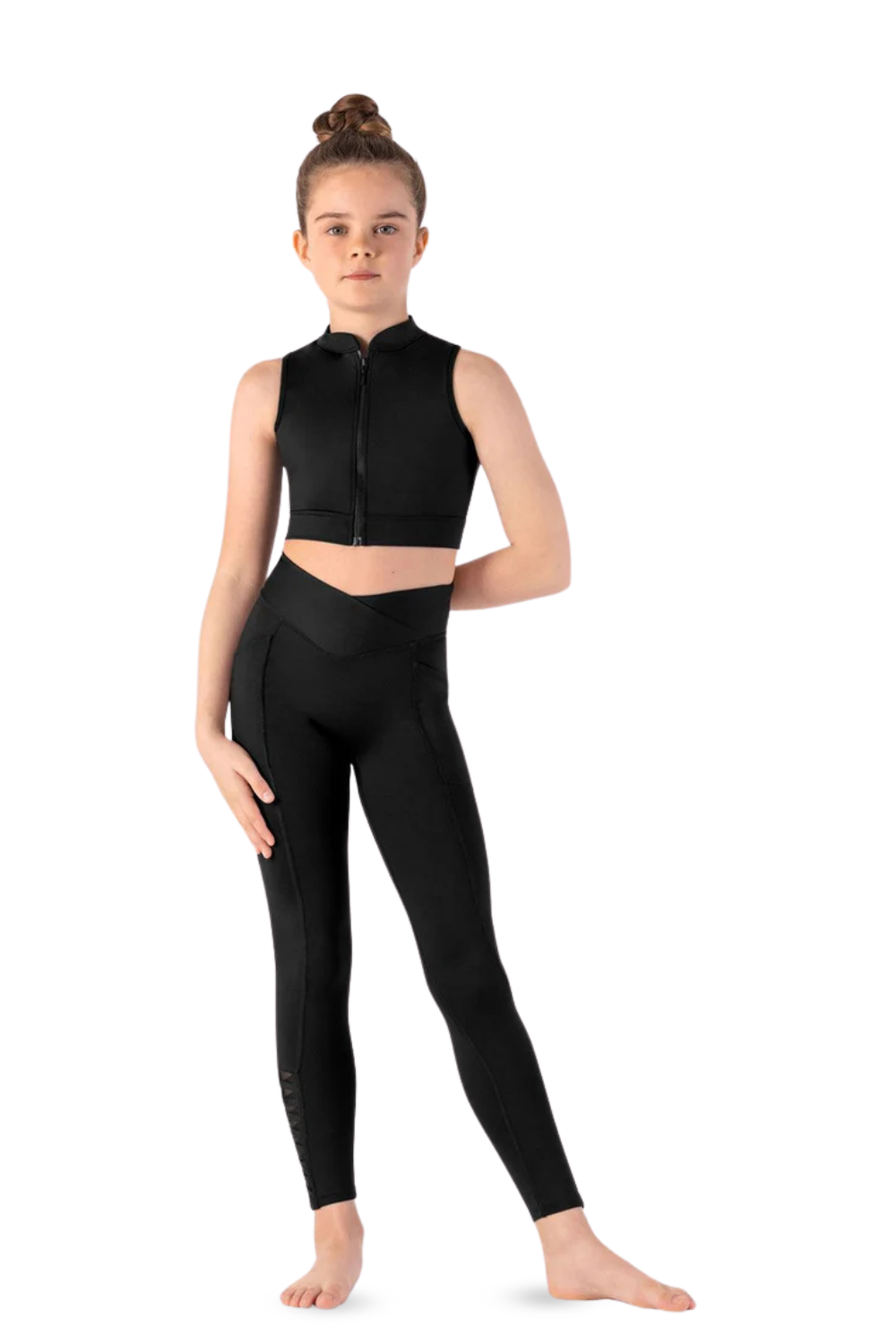 Our Girls Jacky Zip Front Crop Top features a high neck with zip front fastening, an intricate twist mesh back panel in a confident cropped length. Pair with our Una Full Length Leggings or Nicolia V Front Shorts for your perfect dancewear look.