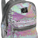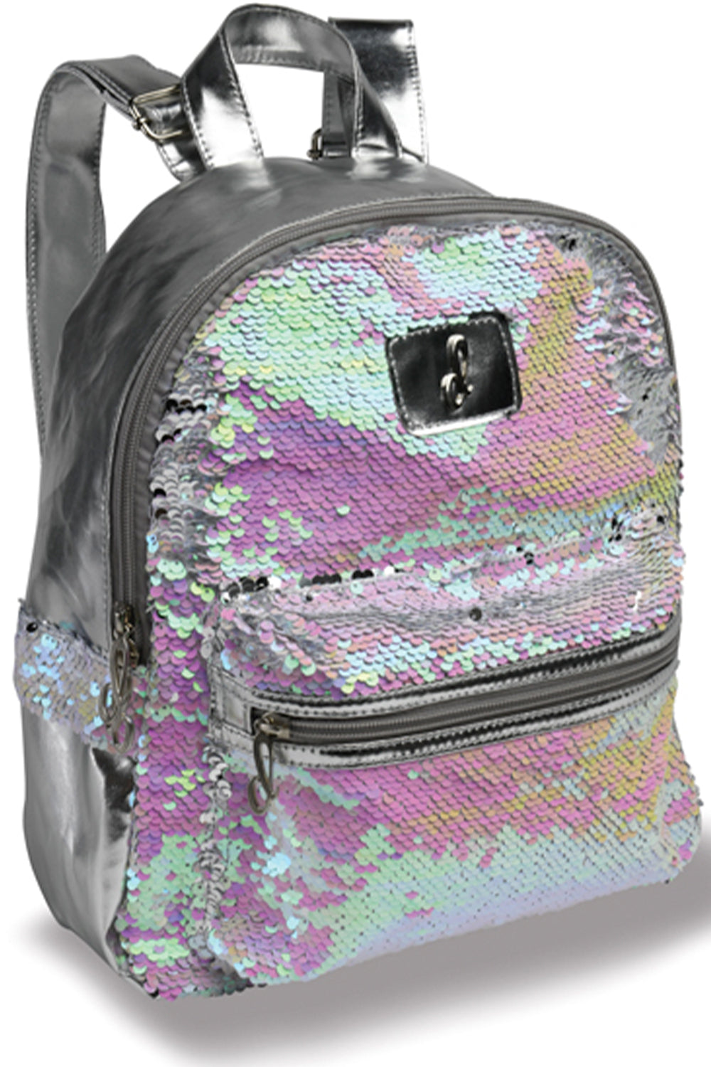 A fun and reversible (pink to silver) pearlescent sequin backpack.