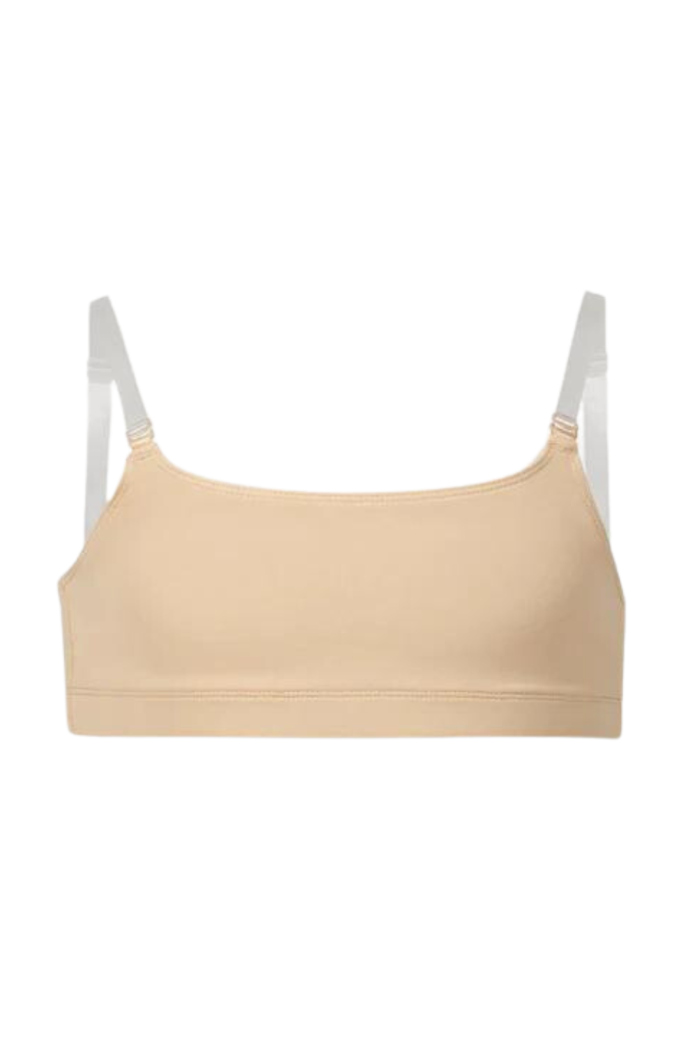 Our Girls Leia Crop Top features a scoop neck with clear adjustable camisole straps. Pair with our Girls High Waist Brief or Girls High Waist Short for the perfect underwear set. Part of our new Body Essentials collection; available in a range of tones to suit every dancer.