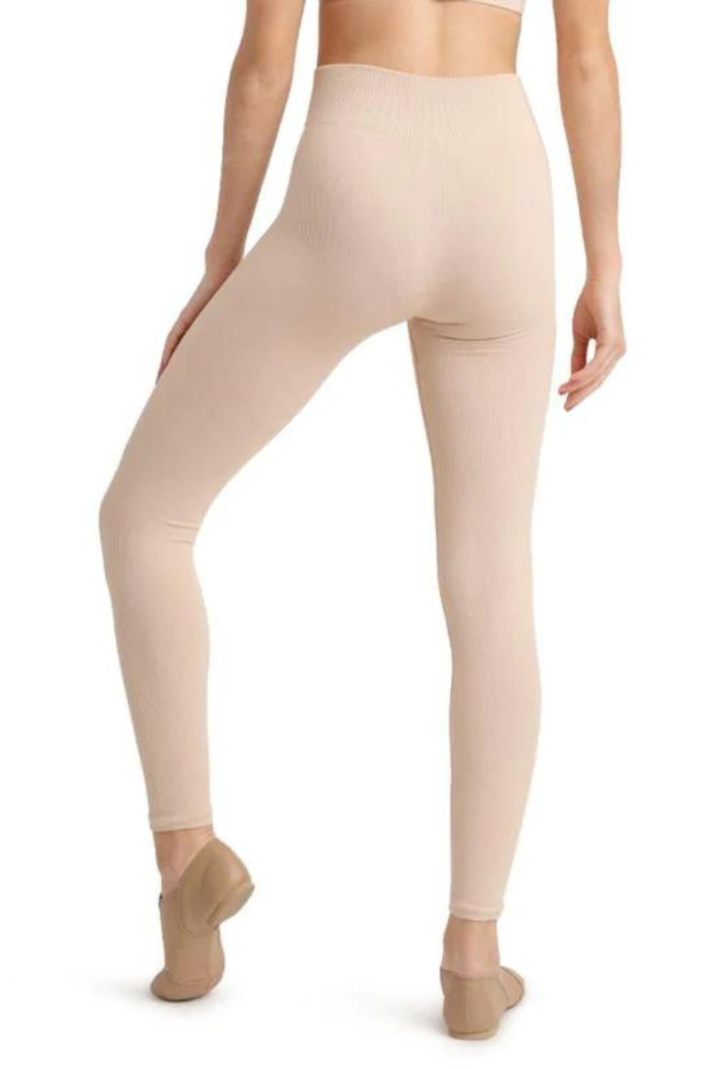 Move with the ultimate freedom in the seamless Rib Legging. Made of a nylon and spandex blend that is resilient. Ribbing details highlight the dancer's form. Pair with the Rib Crop Top and dance shoes for a seamless studio look or the Renewal Warm Up Jacket and sneakers for an athleisure look.