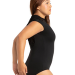 Introducing the breathtaking Stelle Leotard, a dancewear piece that screams confidence and comfort. Crafted from a blend of polyester and spandex, this cap sleeve leotard boasts a soft and stretchy fabric that moves with your every twist and turn. The mesh yoke, made from a dash of polyester and spandex, adds sophistication and breathability to this already stunning piece. The high neck, off-the-shoulder single-layer mesh yoke, double-layer mesh collar, and curved v-neckline come together to create a chic and stylish look. The single-layer mesh back and shoulder detail add a subtle touch of elegance, while the slit back opening ensures added comfort and style. All colors are fully front-lined, and the burnout velvet patterned mesh is dyed-to-match, providing a consistent and professional look. The two-button closure at the back guarantees a secure fit, while making it easy to put on and take off. Pair with the Bellezza Skirt or Vita Short to complete the set. Available in adult sizes only.