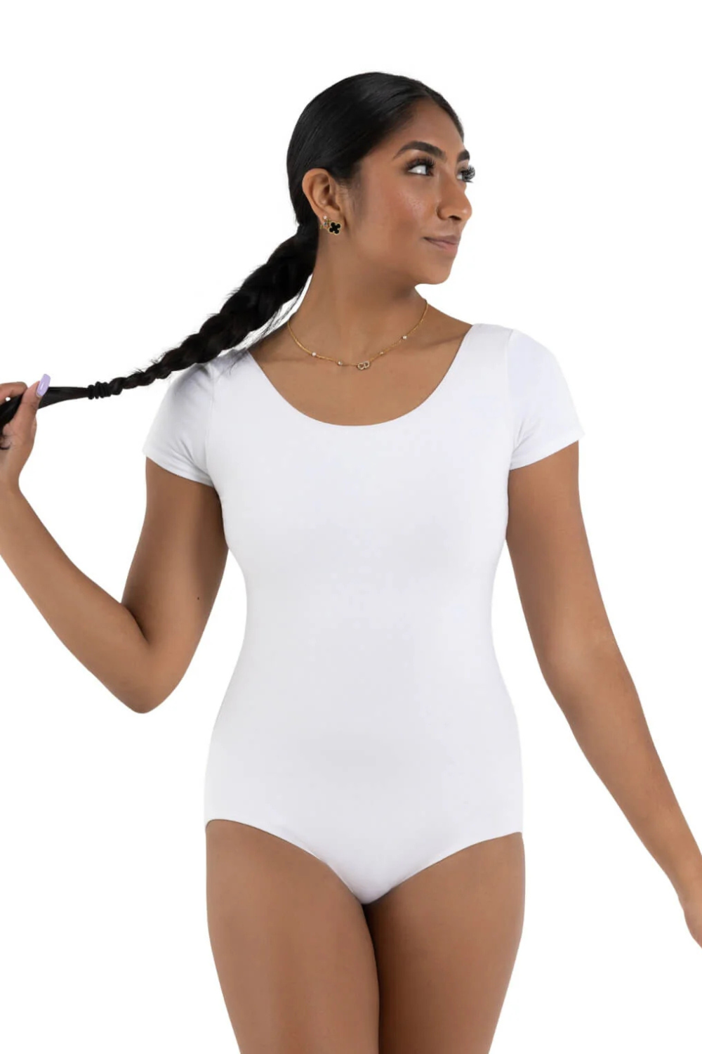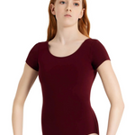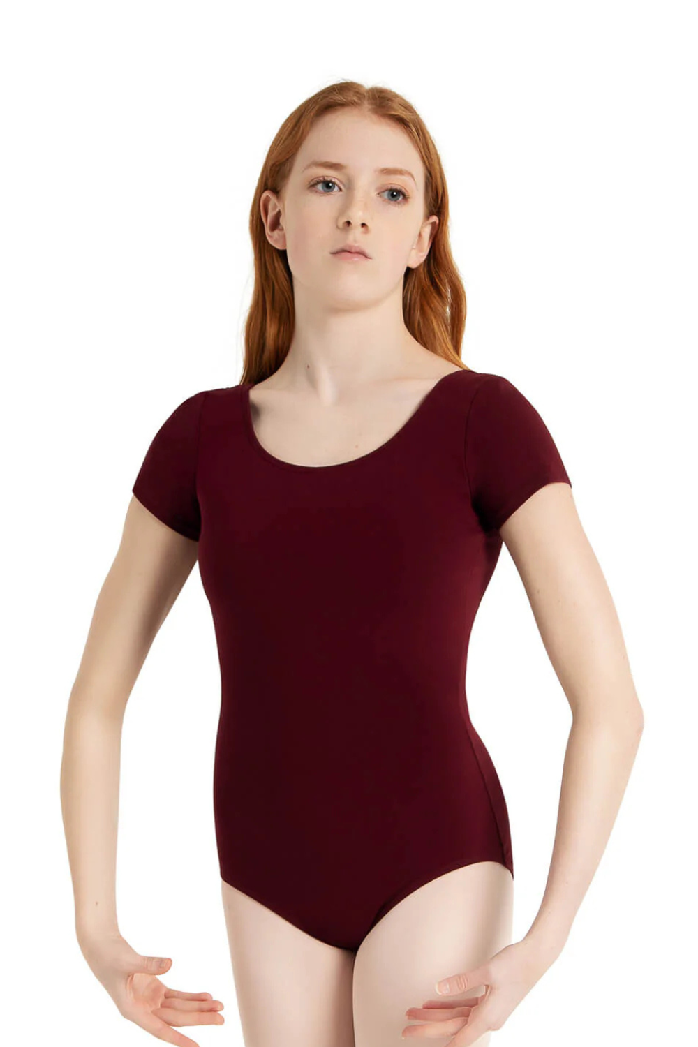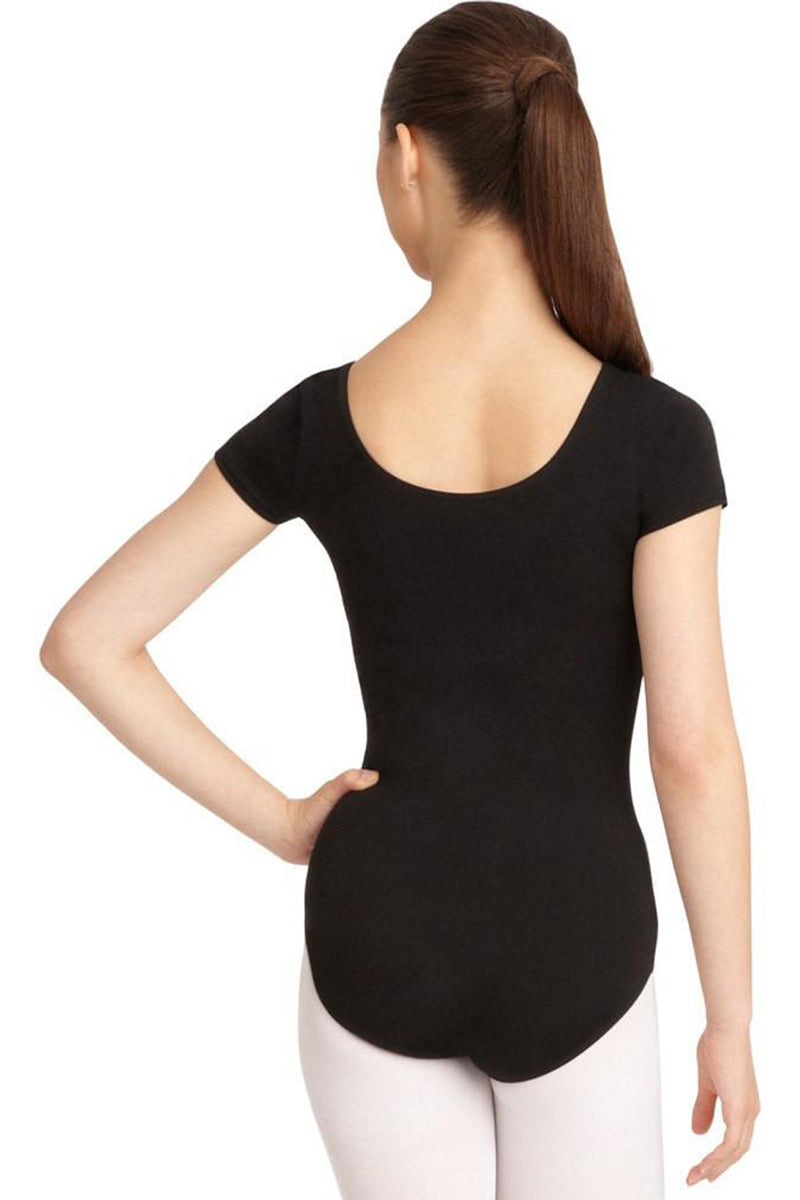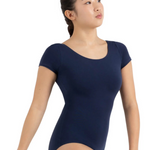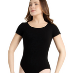This simple silhouette is optimal for studio time, rehearsals and under joggers for an everyday look. The Short Sleeve Cotton Leotard features a classic scoop front and back. Made of a soft cotton and spandex blend that is resilient. Available array of colors to match your mood and style.