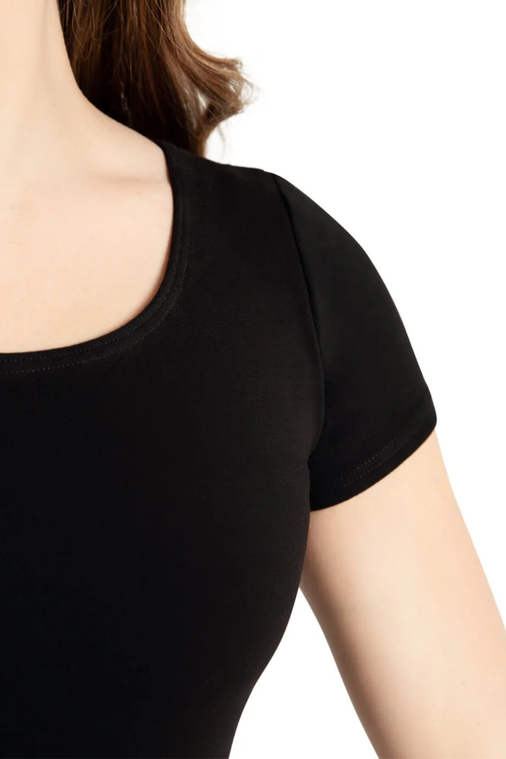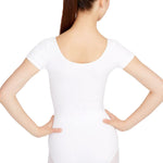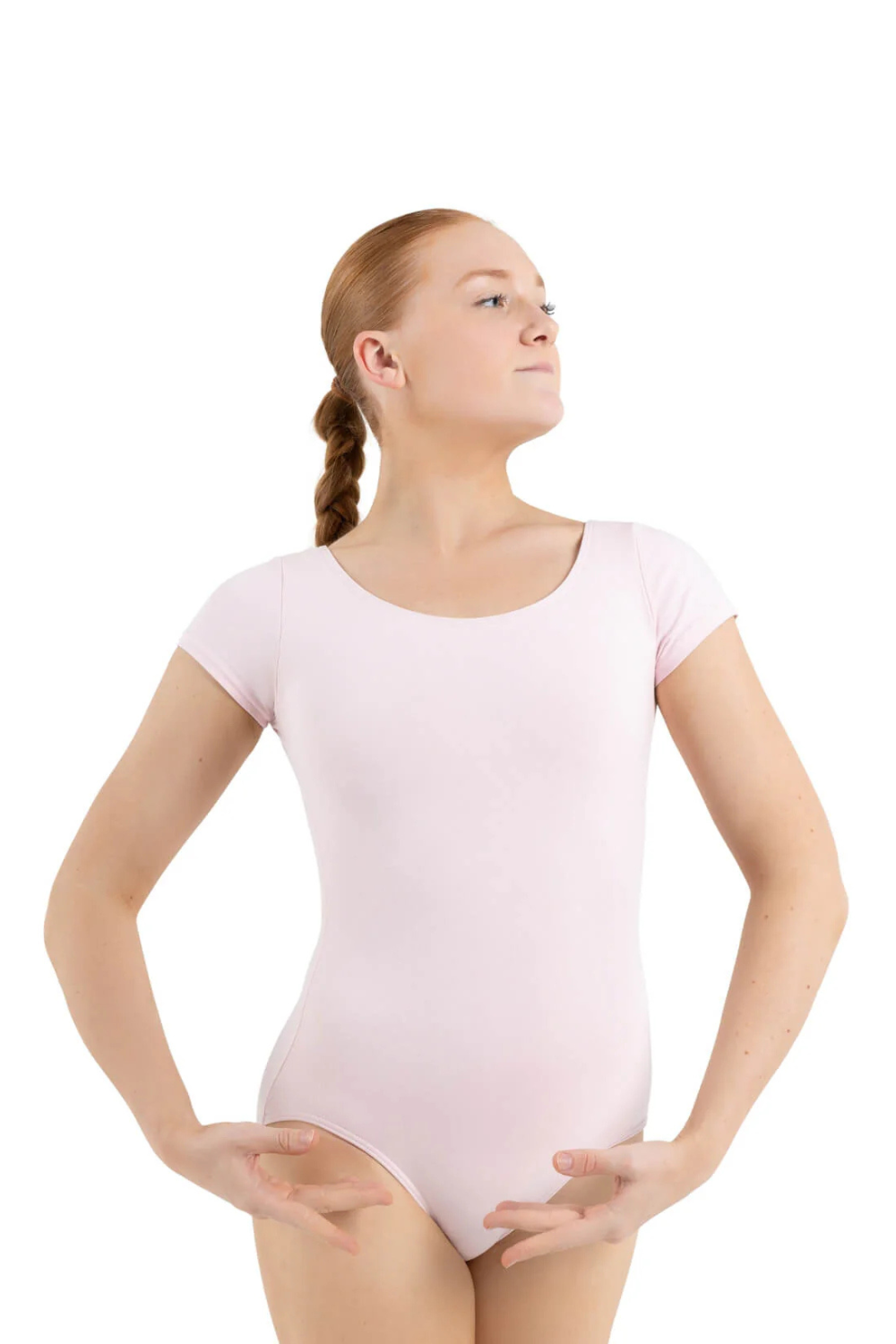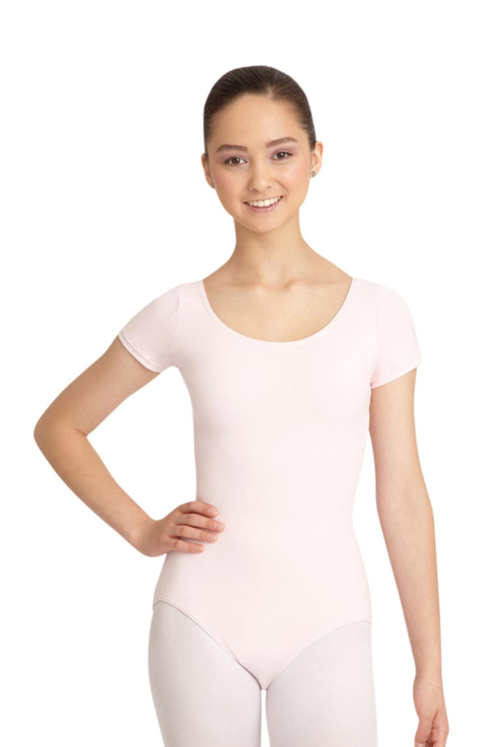 This simple silhouette is optimal for studio time, rehearsals and under joggers for an everyday look. The Short Sleeve Cotton Leotard features a classic scoop front and back. Made of a soft cotton and spandex blend that is resilient. Available array of colors to match your mood and style.