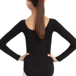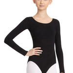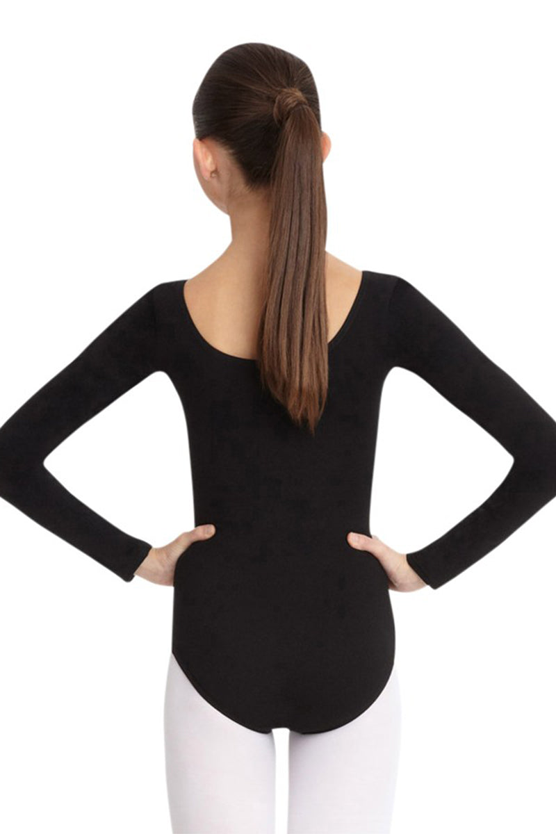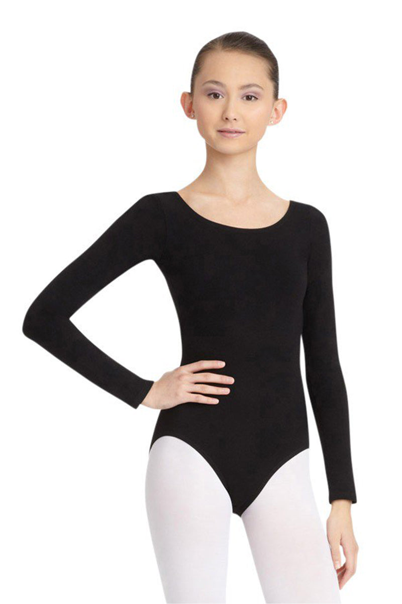 This best-selling Long Sleeve Leotard features a classic scoop front and back. Made of a cotton and Lycra® spandex blend that is soft and resilient. Optimal for dance classes and even under joggers for an everyday look. Long sleeves will keep dancers warm on cold studio days.