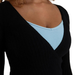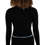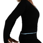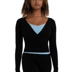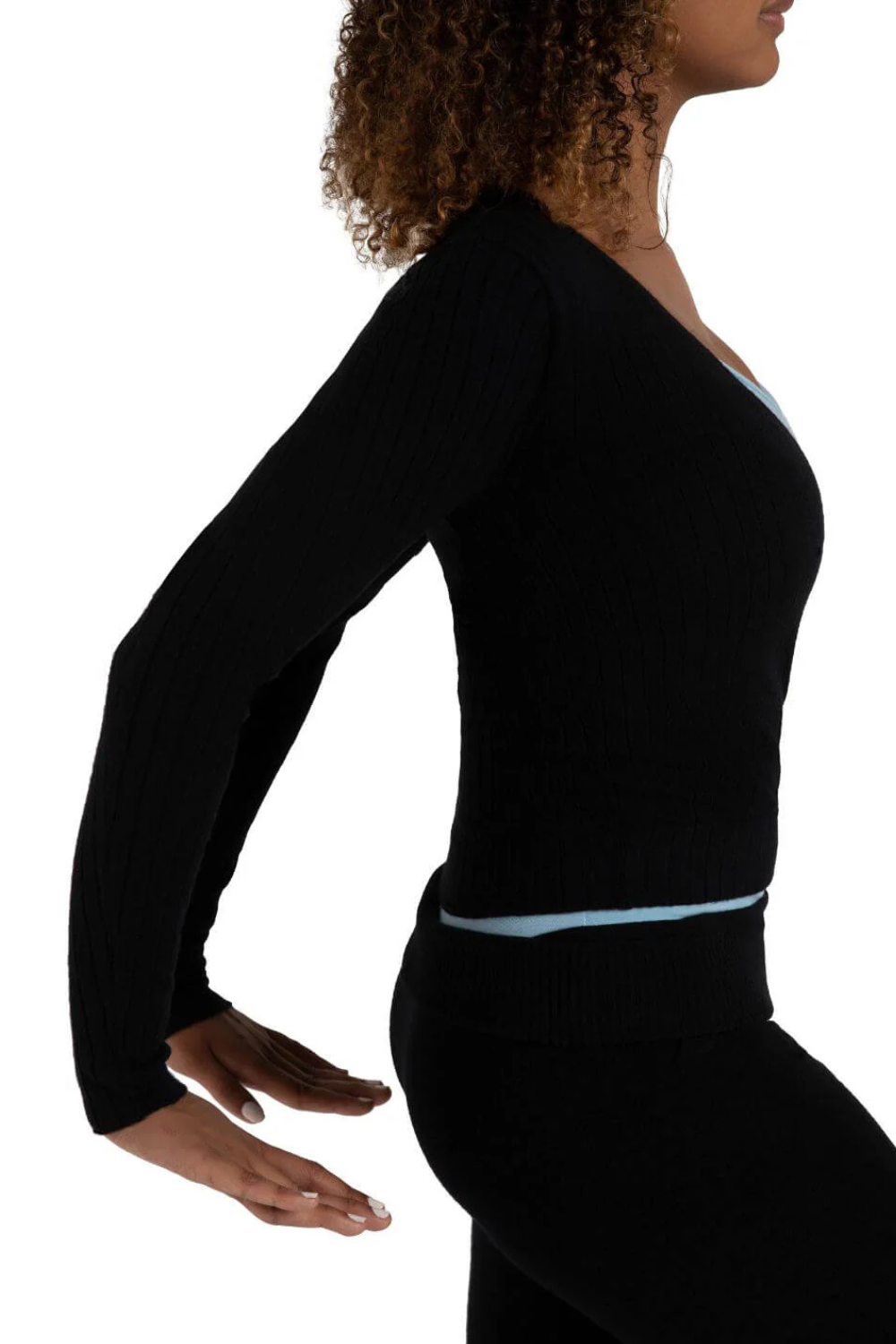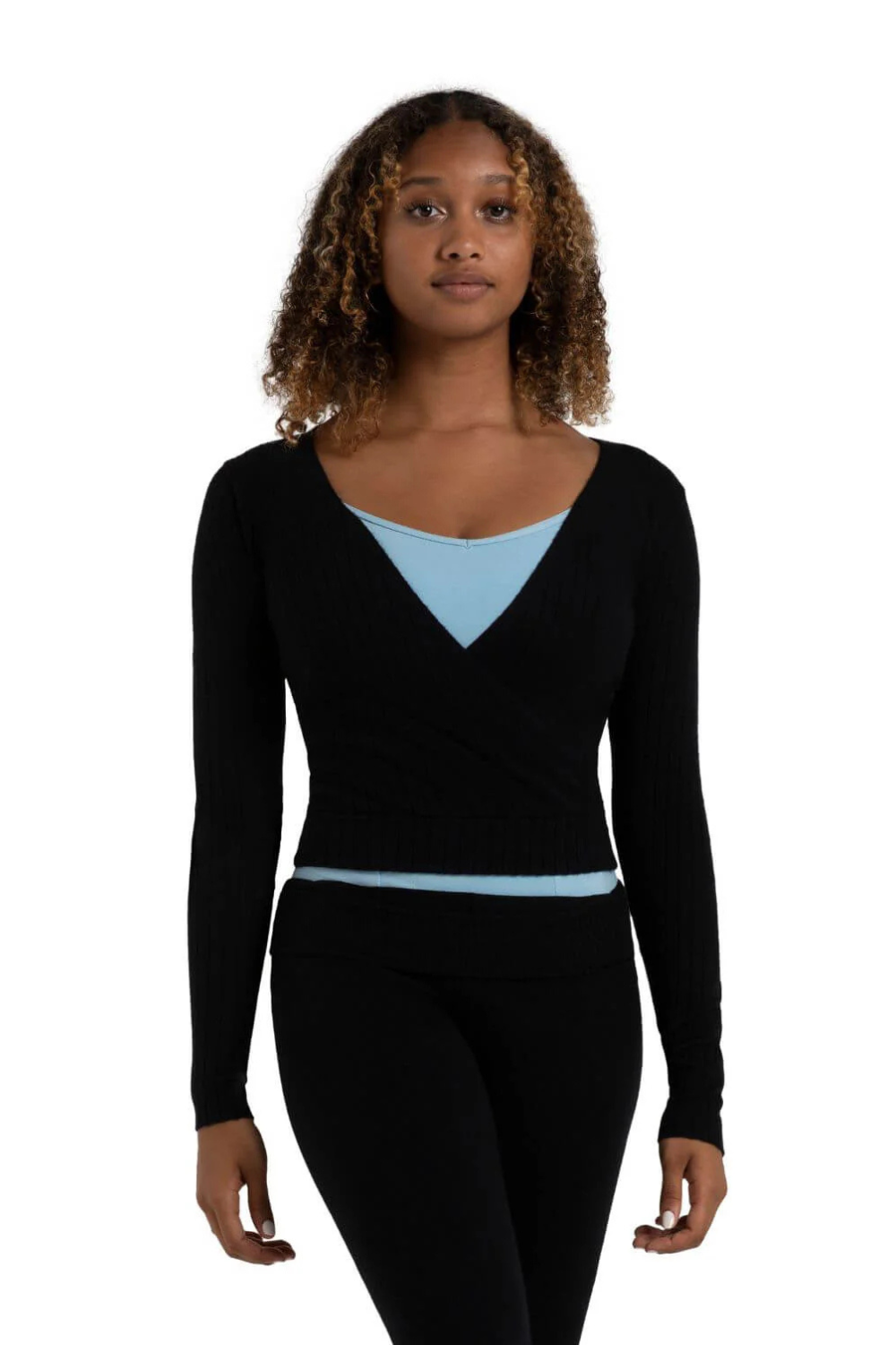 The Crossover Sweater offers both elegance and comfort. The long sleeve sweater features a chic crossover front that seamlessly integrates into the waistband without a tie. The 8x2 rib knit design and bound edges add a refined touch to the extra-soft fabric, making it perfect for layering over dancewear or casual outfits. Available in adult and child sizes.