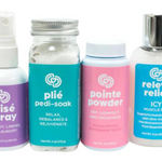Pointe Powder - Dry, disinfect, and deodorize your tired toes and pointe shoes with our silky-smooth, super-absorbent Pointe Powder. Pro-Vitamin B5 and essential oil of Eucalyptus and Peppermint help soothe achy feet. Powder can be used to reduce friction and absorb moisture anywhere. Ingredients include Baking Soda, Non-Nano Zinc Oxide, Non-GMO Corn Starch, Pro-Vitamin B5, Essential  and Fragrance Oil of Eucalyptus and Peppermint.