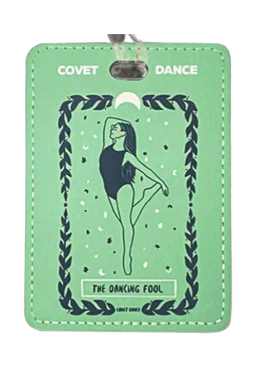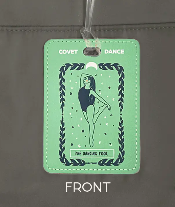For dancers who are also Tarot fans, we predict you're going to love this sparkly Poly-Leather luggage tag dressing up your dance bag.