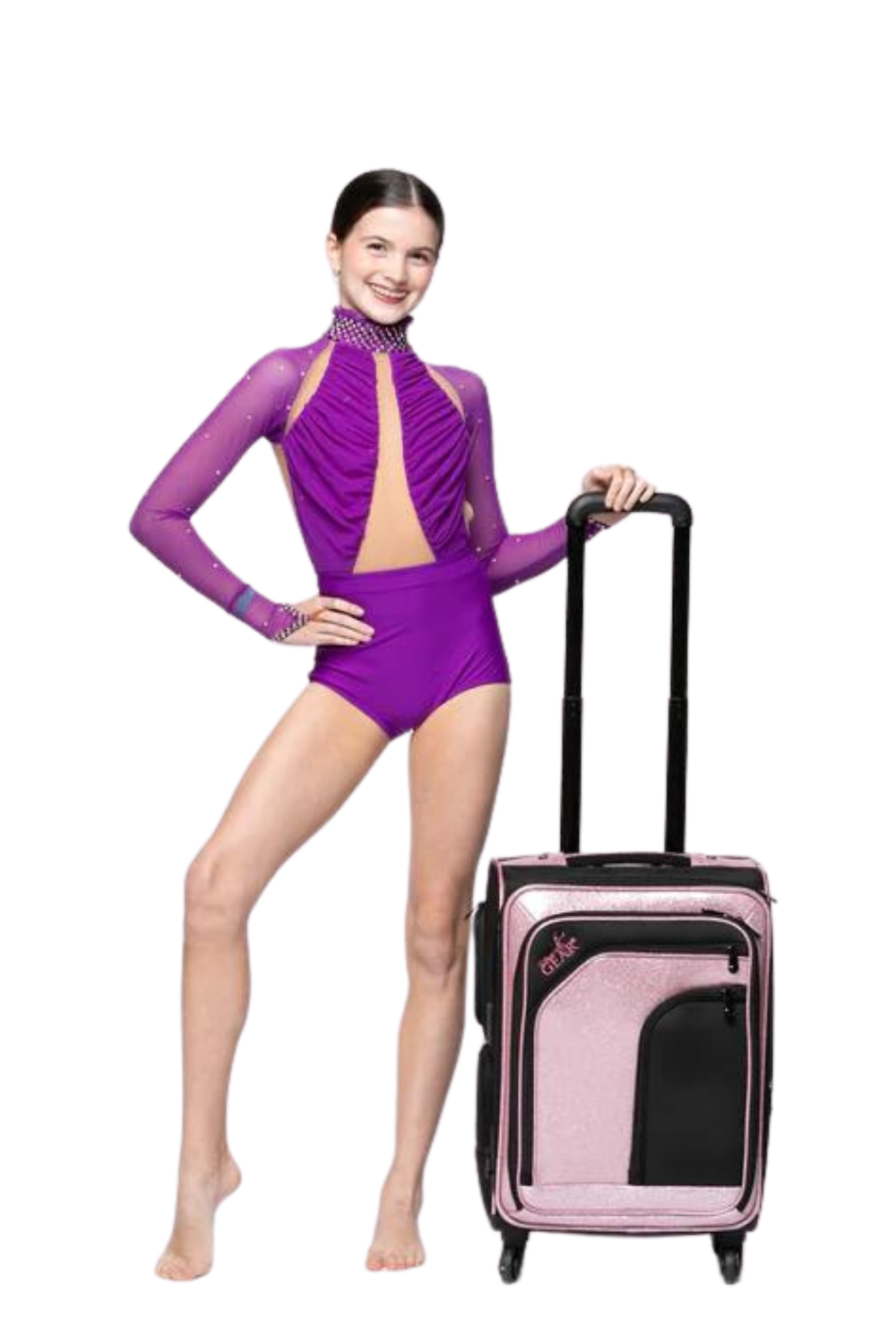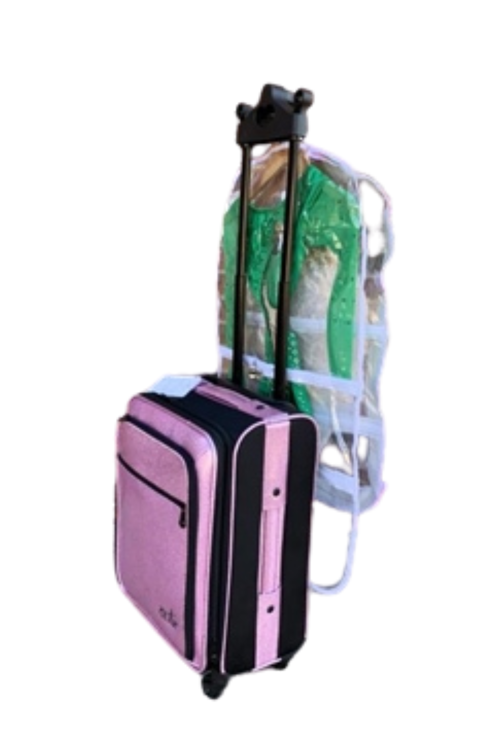 Introducing Glam'r Gear's U.S. Patented new twist on the classic carry-on, with an extended handle topped with Glam'r Gear's exclusive "crown," perfect for hanging 1-3 costumes.  NEW FEATURE is the uHide® Garment-Hanging Bar, ready for the optional privacy curtain, and USB Port!