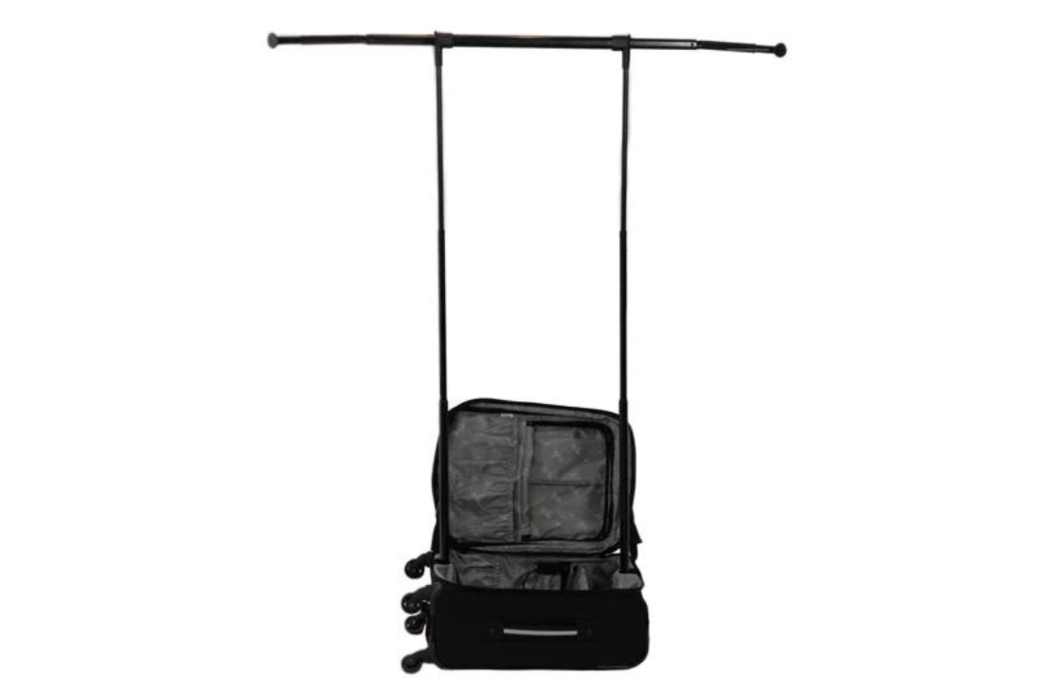 Please note that the hardware for the rack & garment-hanging bar do take up some space inside the bag, so be sure to pack wisely!