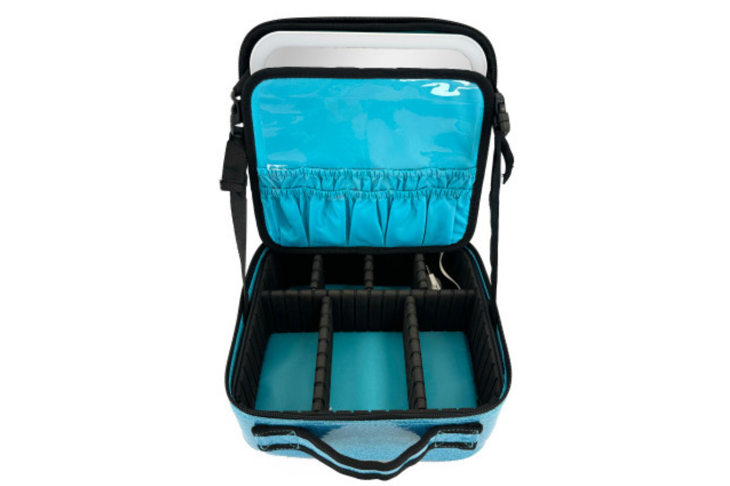 Keep all your makeup organzied with our new Cosmetic Case. This case features a rechargeable LED lighted mirror, adjustable storage compartments, and a place specifically to hold your makeup brushes.