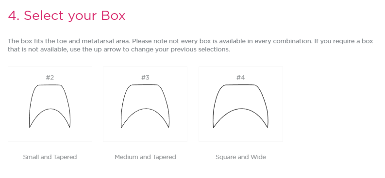 Specify your model, length, width, box, shank, vamp, heel, for a precise, professional fit it’s the custom pointe shoe you don’t have to special order.