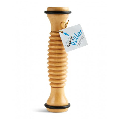 Relieve tension in your feet after back-to-back studio time with the Footsie Roller. This roller relieves tension under foot arches, helps smooth knots and soothes tired feet. Made of wood and silicone gel.