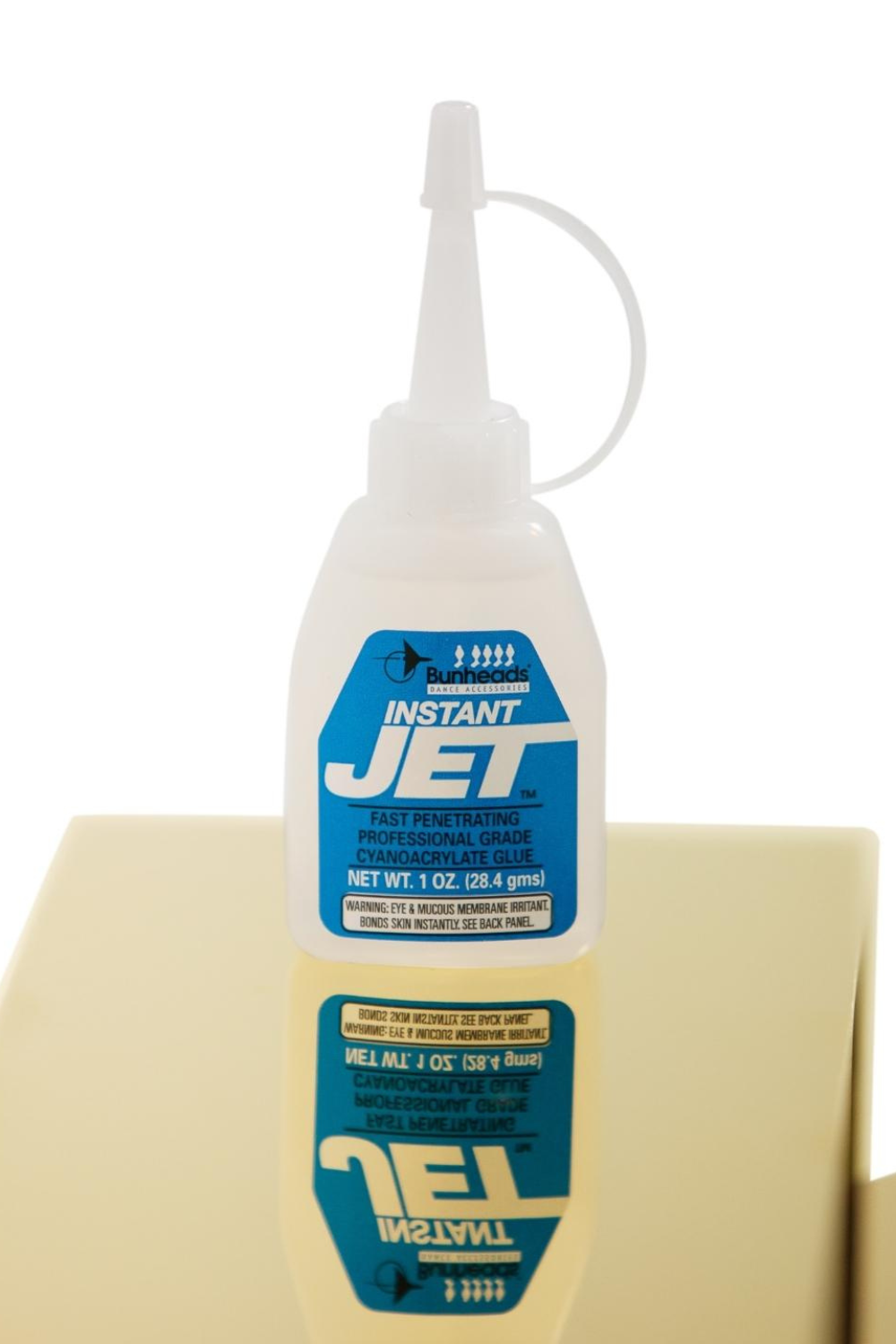 Maximize the life of your pointe shoe by applying a thin layer of fast drying Jet™ Glue to the inside of the toe box and shank. Will not cut into studio time as the glue sets in only 10 to 20 seconds! Small 1 oz. bottle can be thrown into any size dance bag.