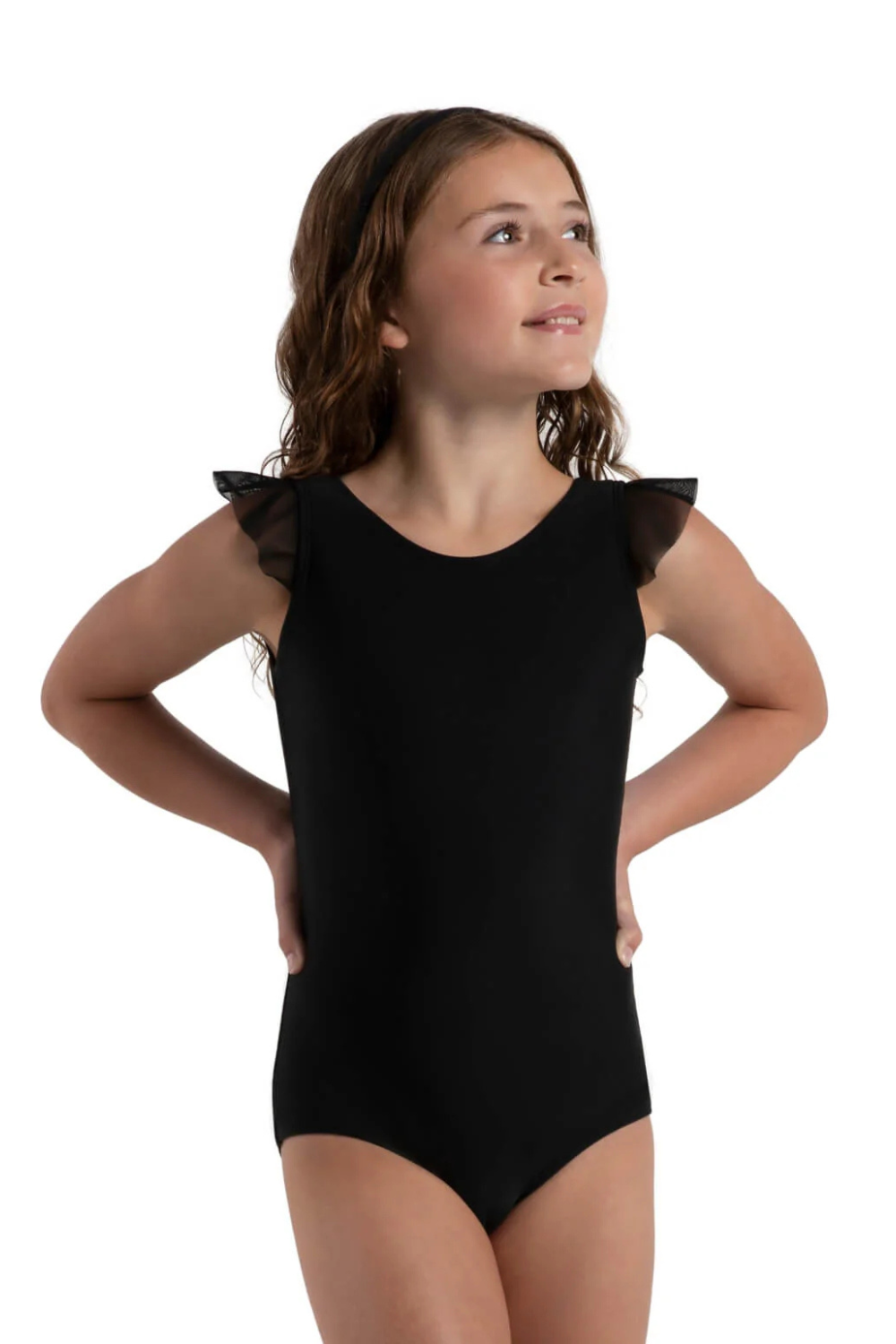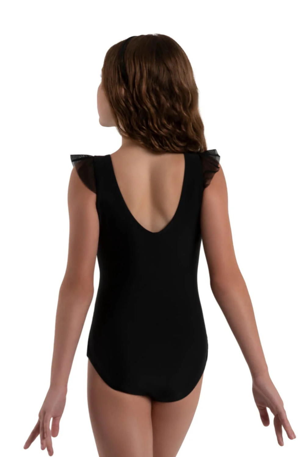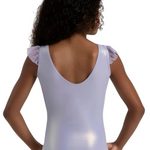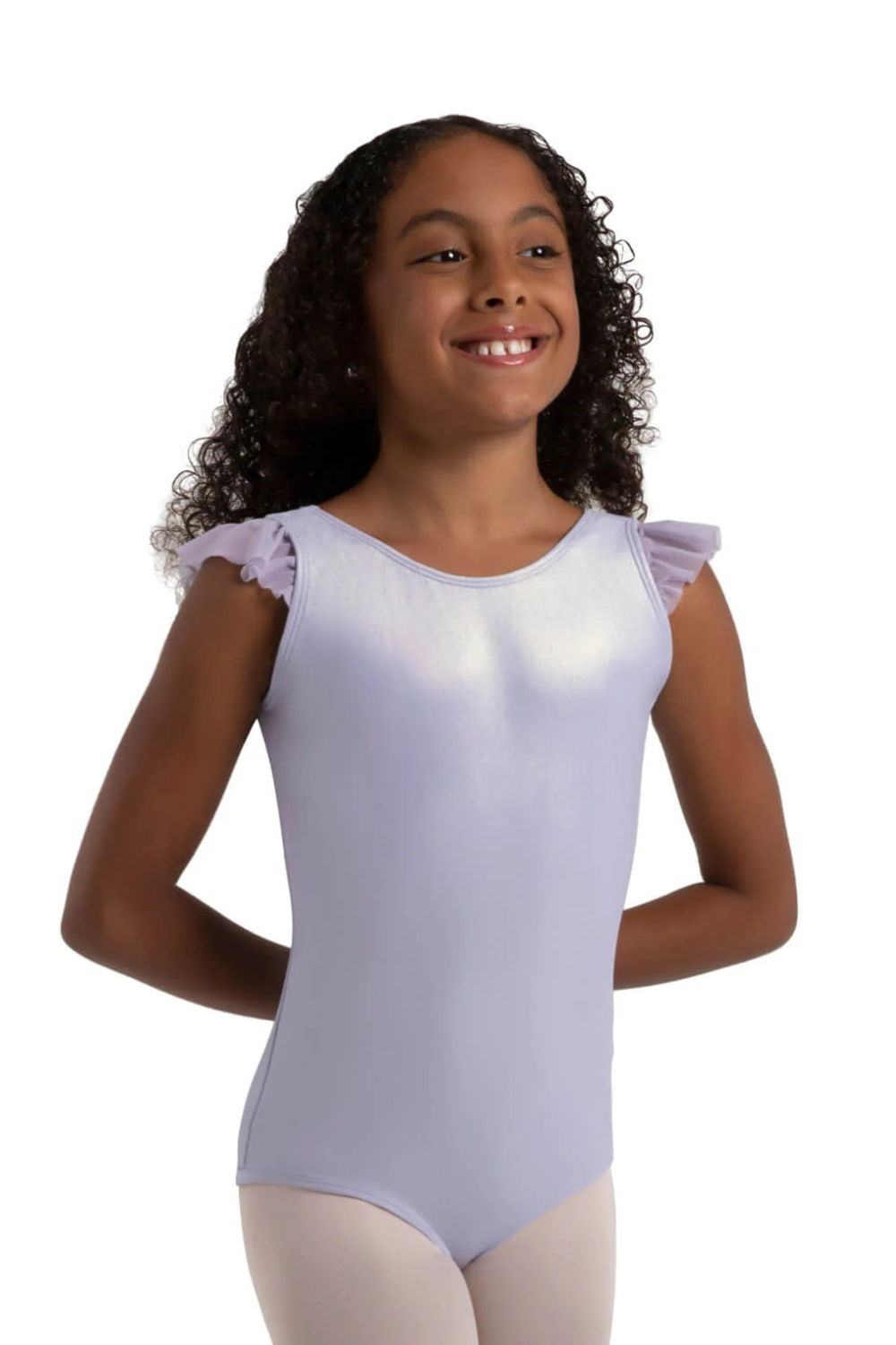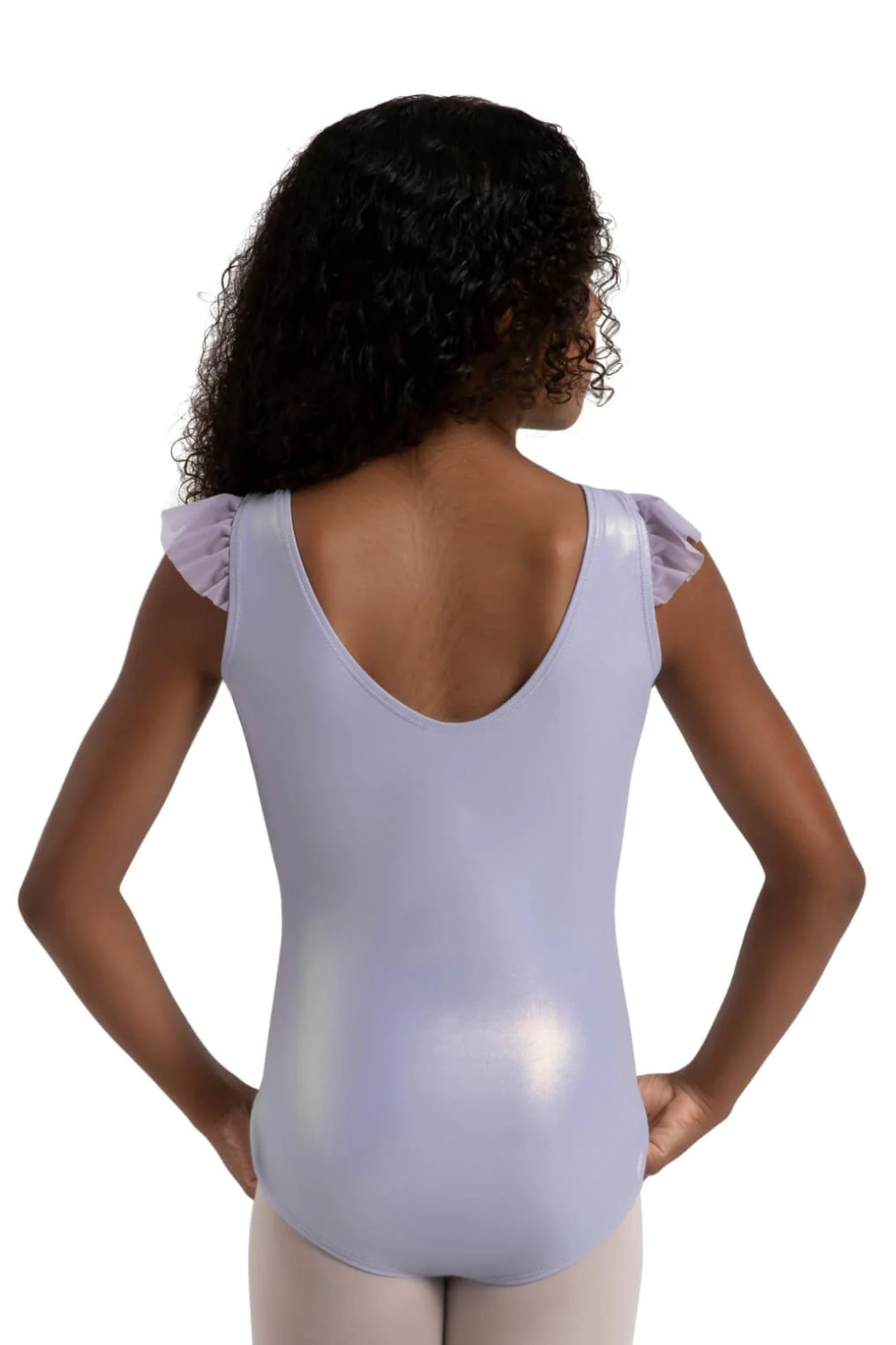 The Amelia Leotard from the limited-edition Wanderlust collection brings elegance and comfort together for young dancers. This tank leotard is made from a blend of Nylon and Spandex and features a scoop neck and delicate mesh flutter sleeves. The scoop back adds a graceful touch, while the ballet leg line ensures a perfect fit. All colors are fully front lined for added comfort and coverage. The Lavender, Light Blue, and Pink colorways boast a stunning foil finish, while the Black colorway offers a classic look without the foil. Available in child sizes only.