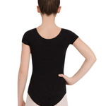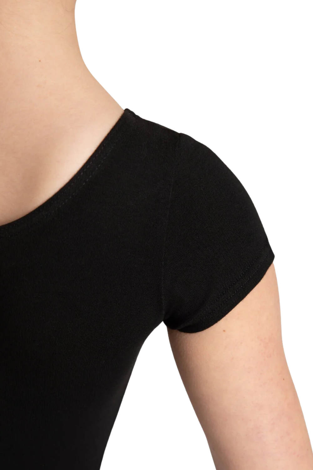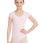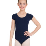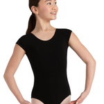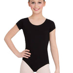 This simple silhouette is optimal for studio time, rehearsals and under joggers for an everyday look. The Short Sleeve Cotton Leotard features a classic scoop front and back. Made of a soft cotton and spandex blend that is resilient. Available array of colors to match your dancer's style.