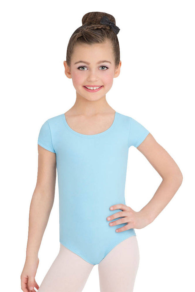This Team Basic is optimal for studio time, rehearsals and under joggers for an everyday look. The best-selling Short Sleeve Leotard features a classic scoop front and back. Made of a nylon and spandex blend that is soft and resilient. Double stitched seams guarantee long-lasting wear. Available in an array of colors to match your dancer's style.