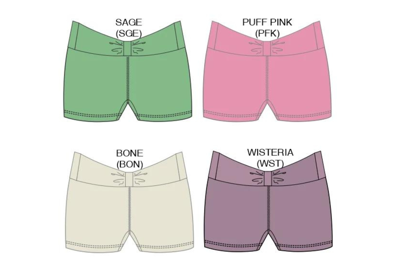 Our super soft fabric gives this short a sleek amazing fit. Details include a banded dropped bow-like center front. These are just the silhouette the girls are looking for right now.