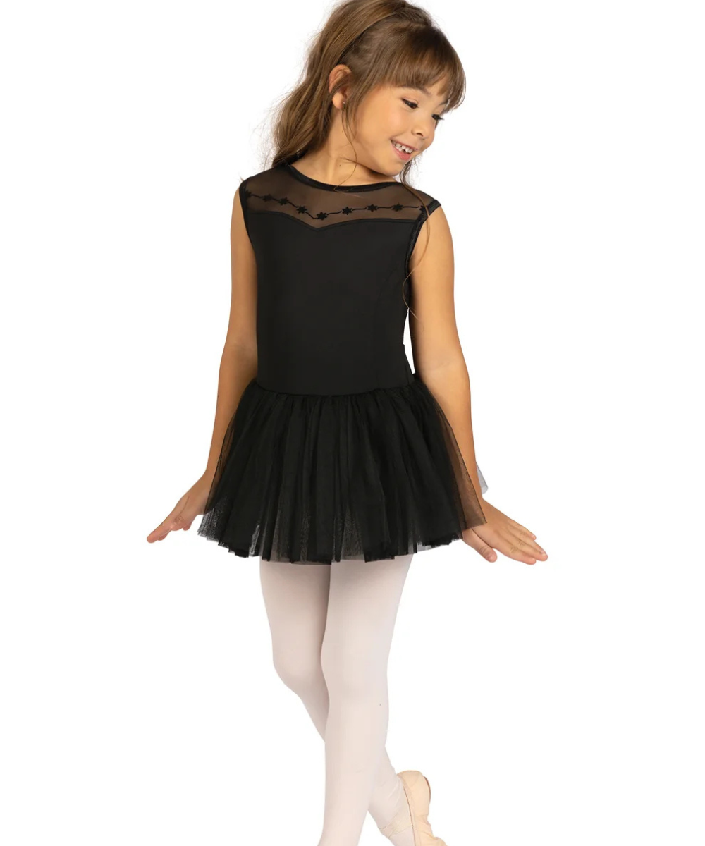 DANSHUZ 25203C GIRLS DORIAN CAP SLEEVE FLOCKED SKIRTED DRESS