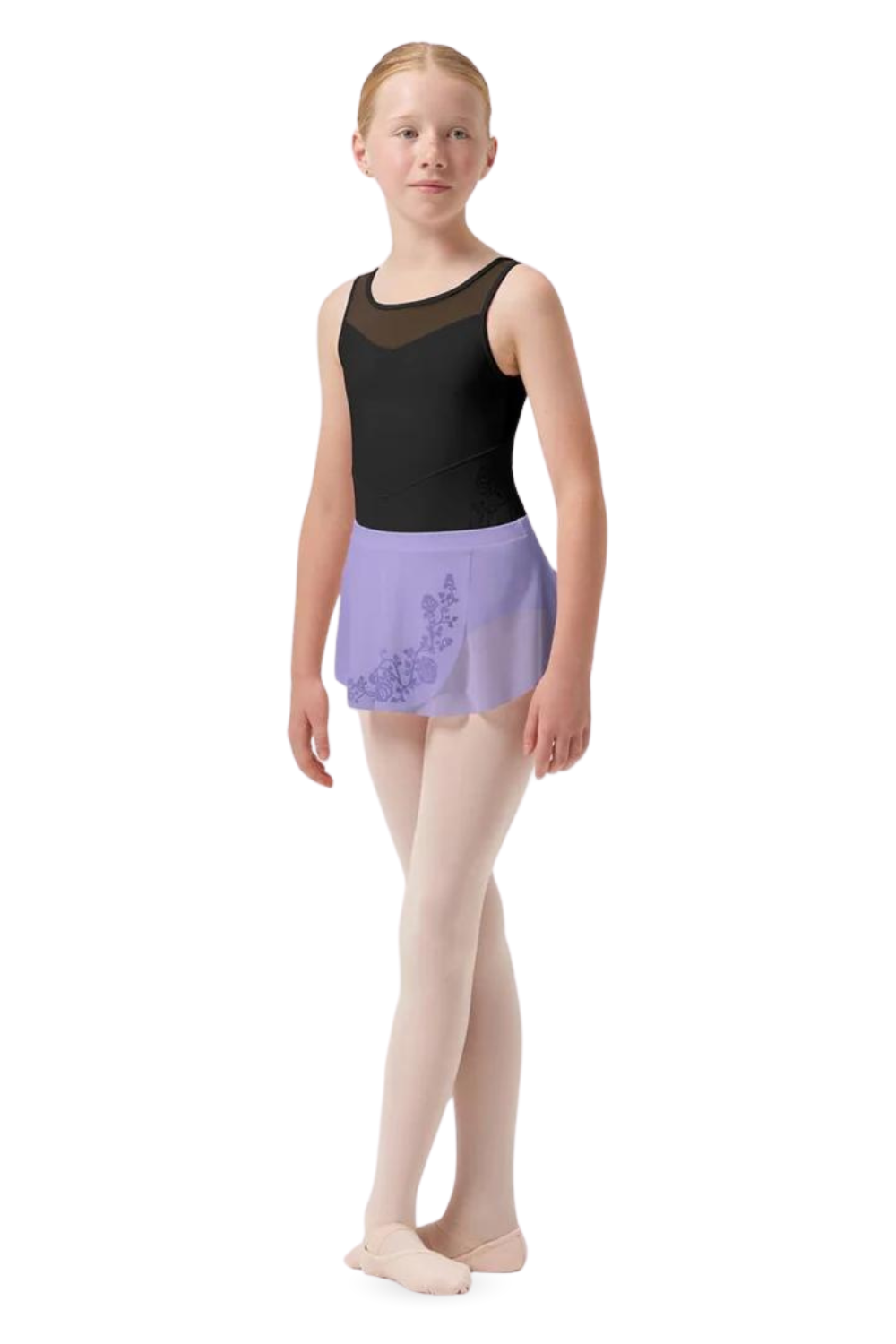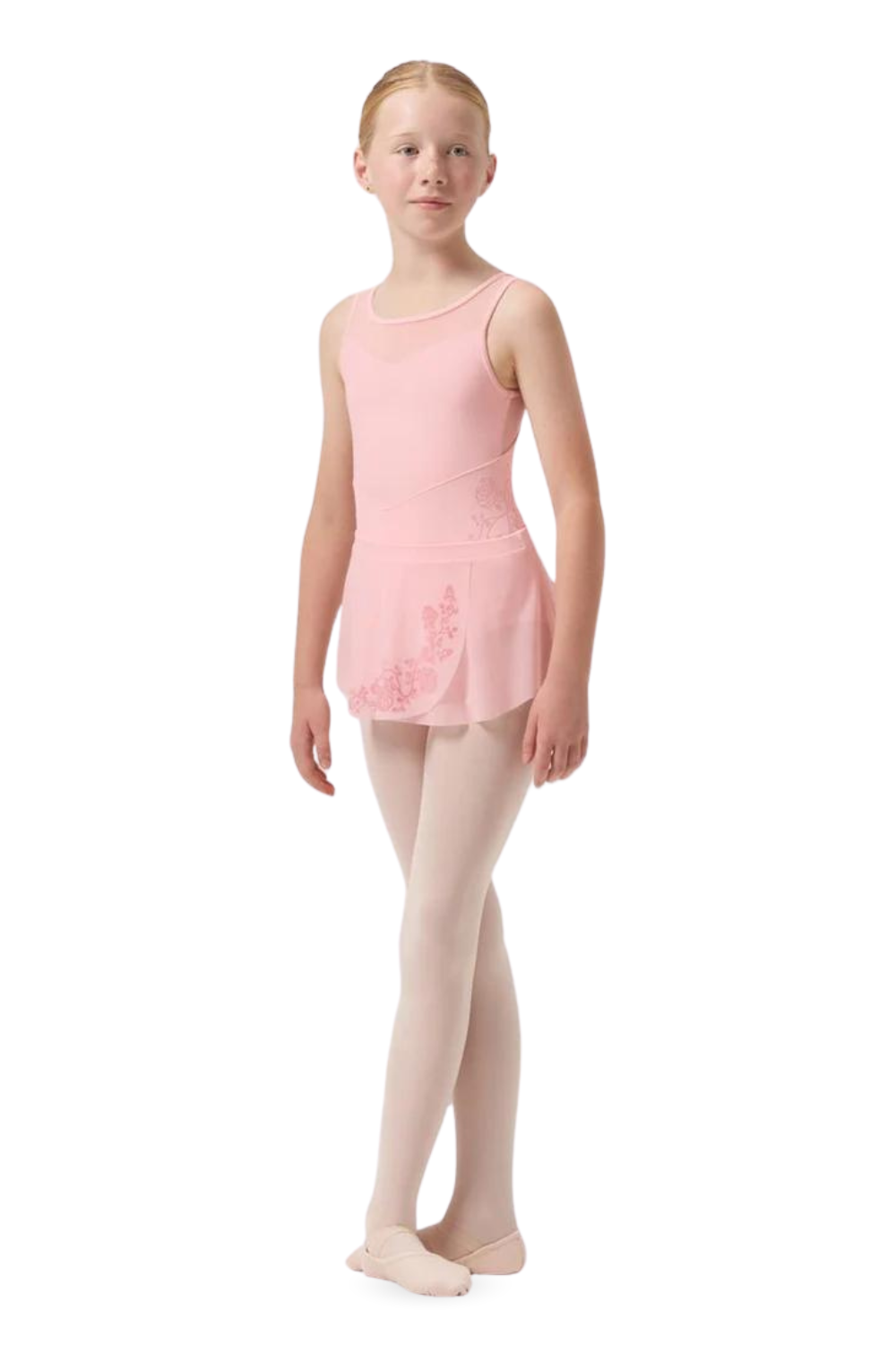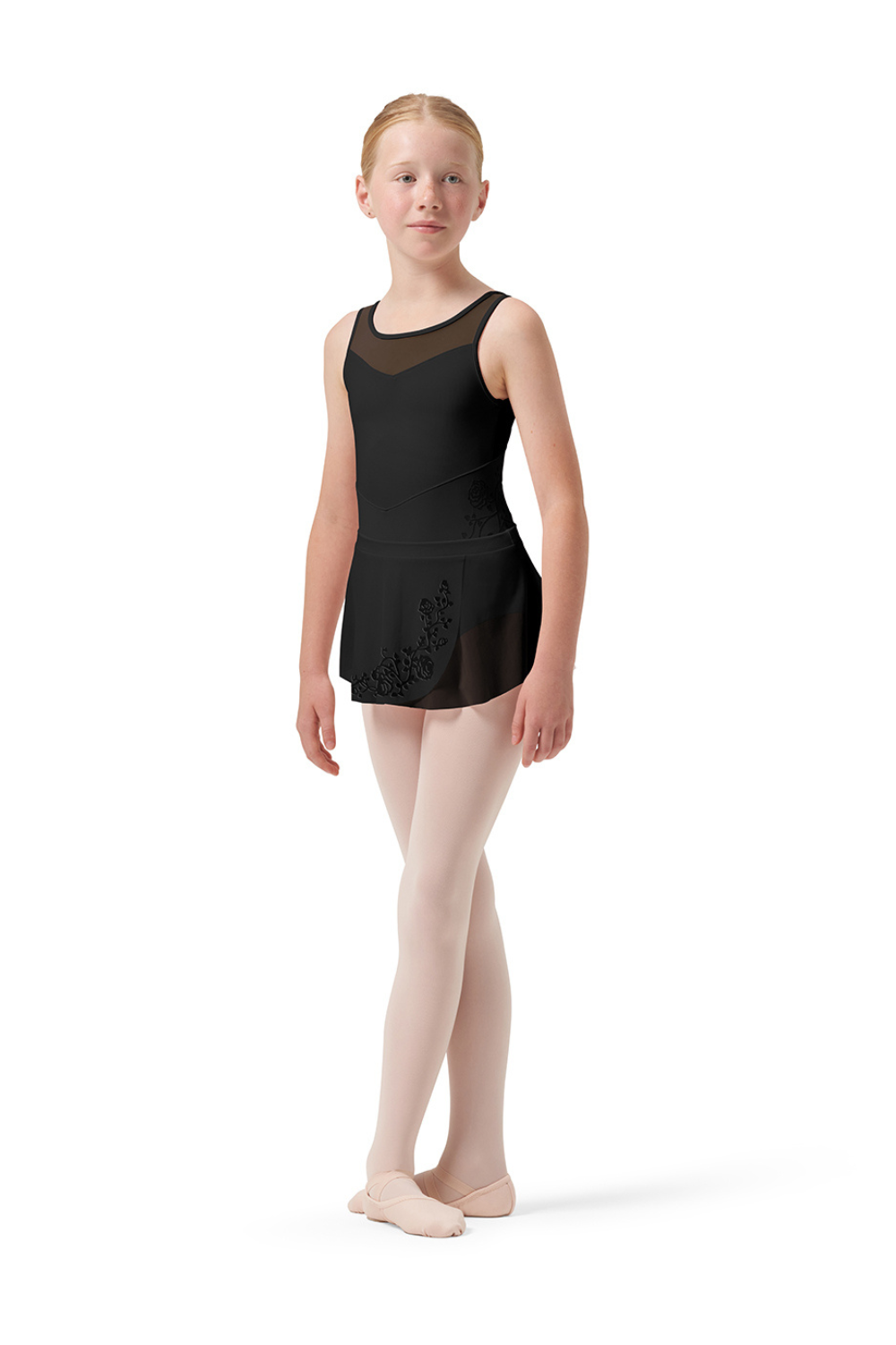Our Girls Sage Mesh Wrap Skirt features an elasticated waistband and floral detailed mesh. Part of our Girls Bloch Rose Vine Collection featuring exquisite flocked floral detailing and delicate mesh panels. This darling collection offers a variety of styles suitable for any budding ballerina in three classical tones.