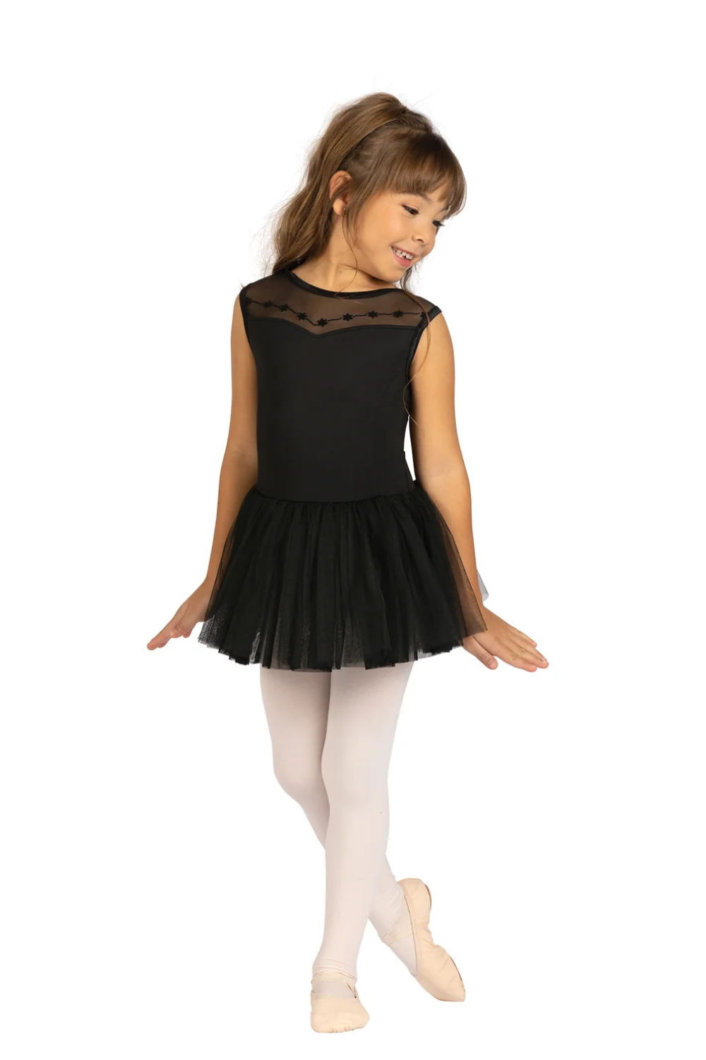 DANSHUZ 25203C GIRLS DORIAN CAP SLEEVE FLOCKED SKIRTED DRESS