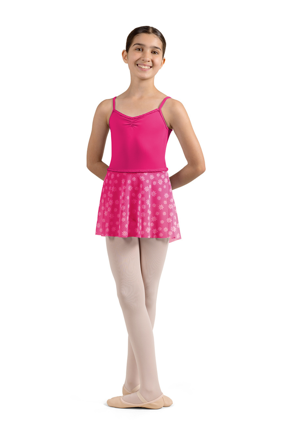Our Girls Mirella Miami Mesh Skirt features an elasticated waist for an easy pull on design with an intricately braided trim waistband; made from soft printed floral mesh. Pair with your favorite Mirella Miami leotard for your perfect dance ensemble. Part of our Mirella Miami Collection; this collection of super-cute dancewear features braided trims, eye-catching shades, and shiny gold details for a touch of show-stopping sparkle.