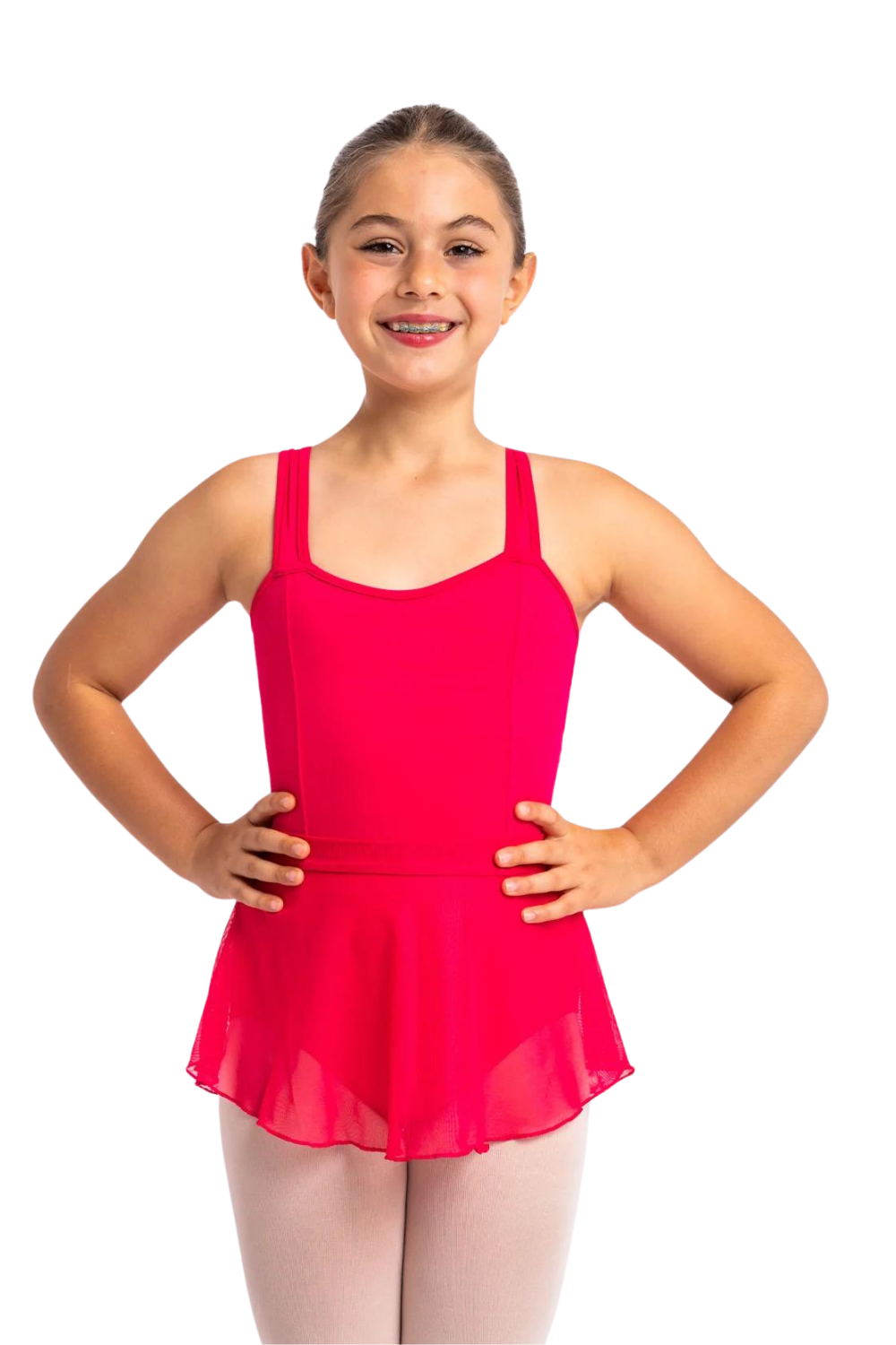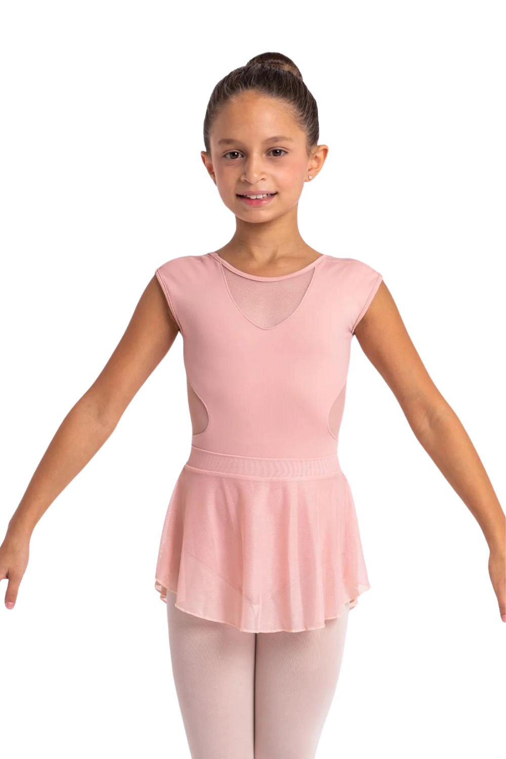 "This child mesh high-low sheer skirt is simply beautiful! The sheer mesh material provides a delicate feel, while the high-low hemline adds a touch of class to the design. The skirt flows beautifully with every movement, accentuating every step and turn. It's a versatile addition to any dancer's wardrobe and can be paired with a variety of leotards for different looks. Overall, this mesh high-low sheer skirt is a gorgeous and graceful option for any dancer looking to add a bit of elegance and charm to their dance outfits."