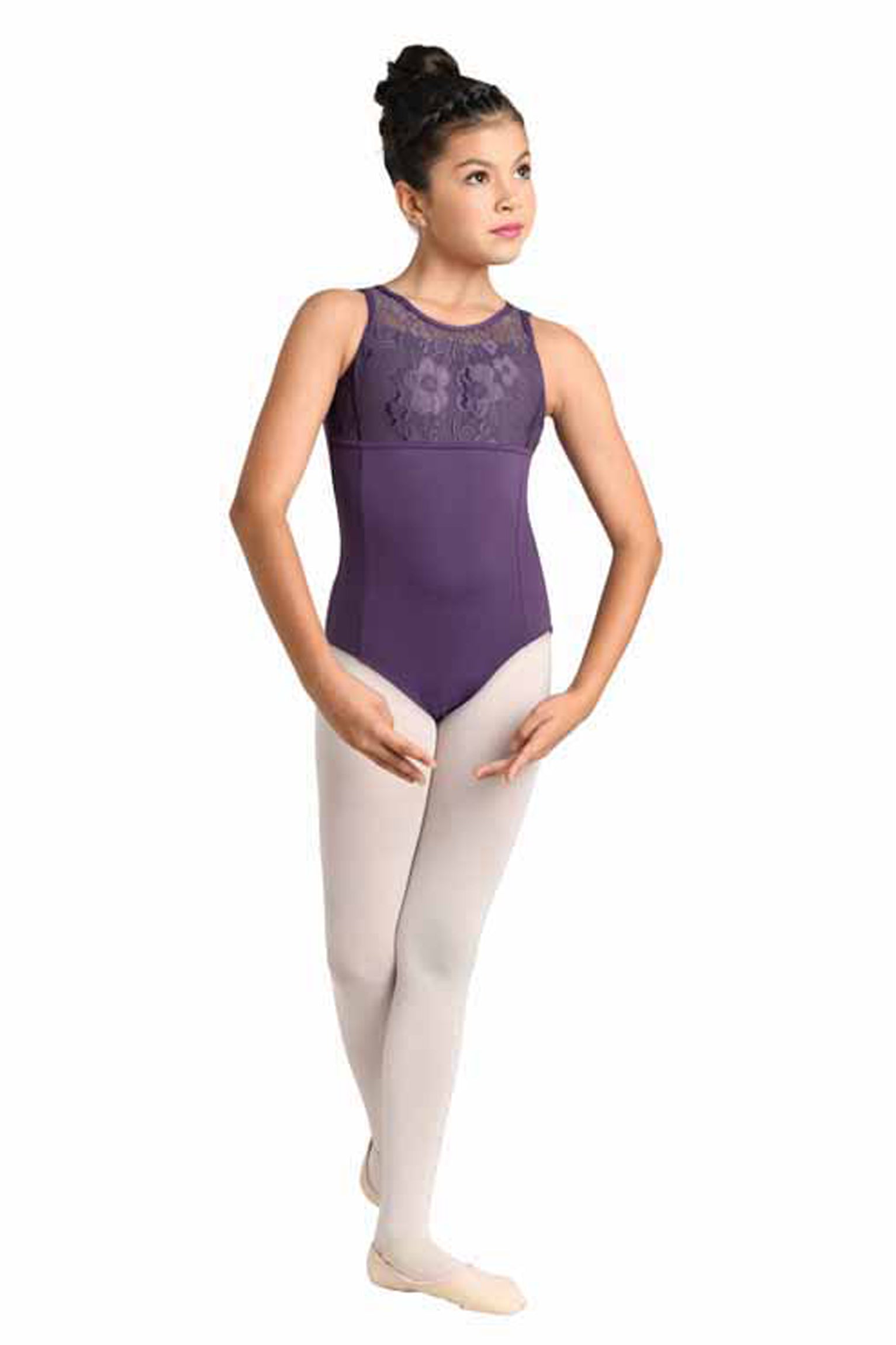 DANSHUZ GIRLS MARCELLA SCALLOPED LACE FRONT OVERLAY TANK LEOTARD