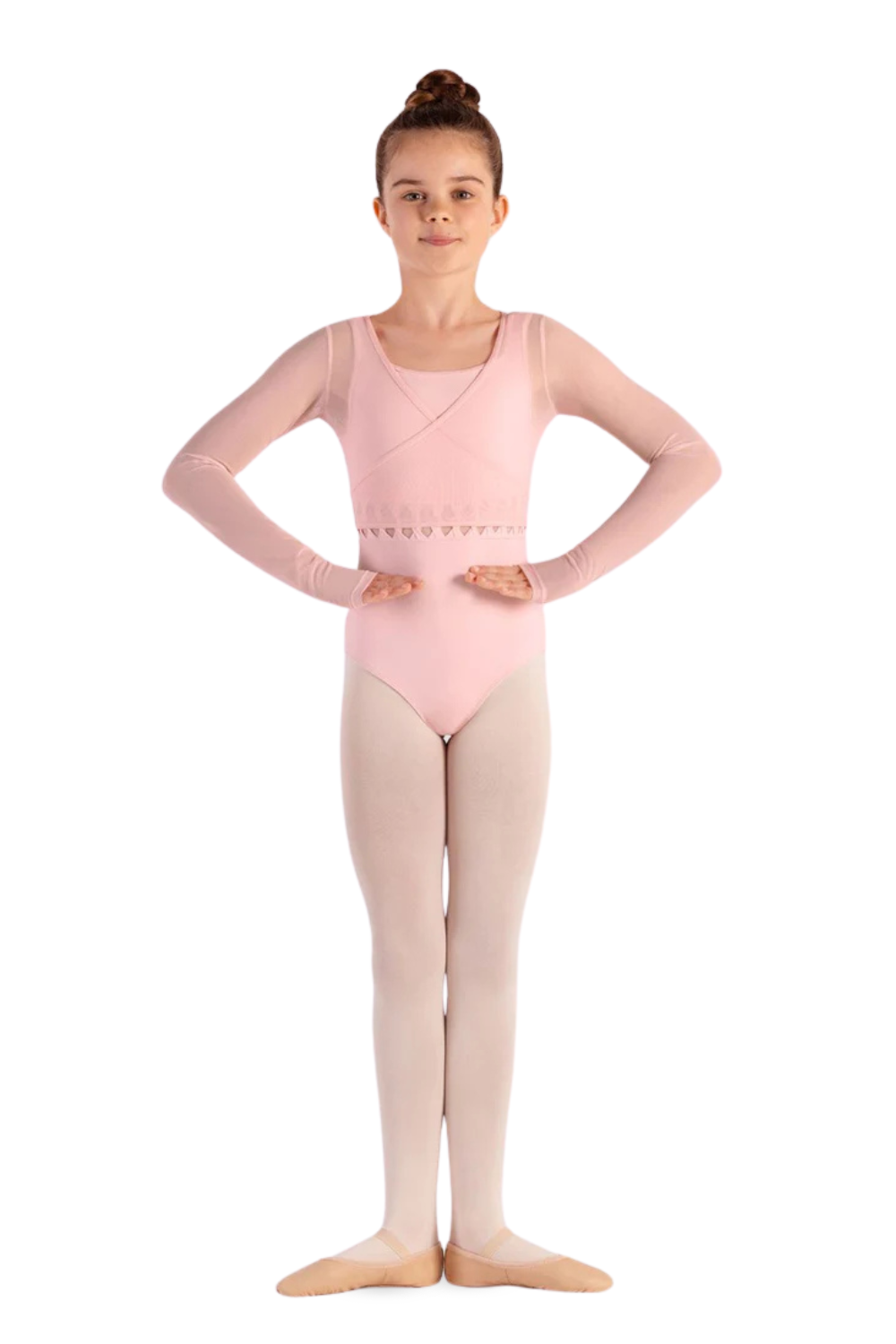Our Girls Henny Mesh Wrap Top features a soft mesh, with full length sleeves in a wrap style that ties at the back for an adjustable fit. Pair with your favorite Girls Tiny Twist Leotard for a class ready outfit. Pair with your favorite Girls Tiny Twist Leotard for a class ready outfit.