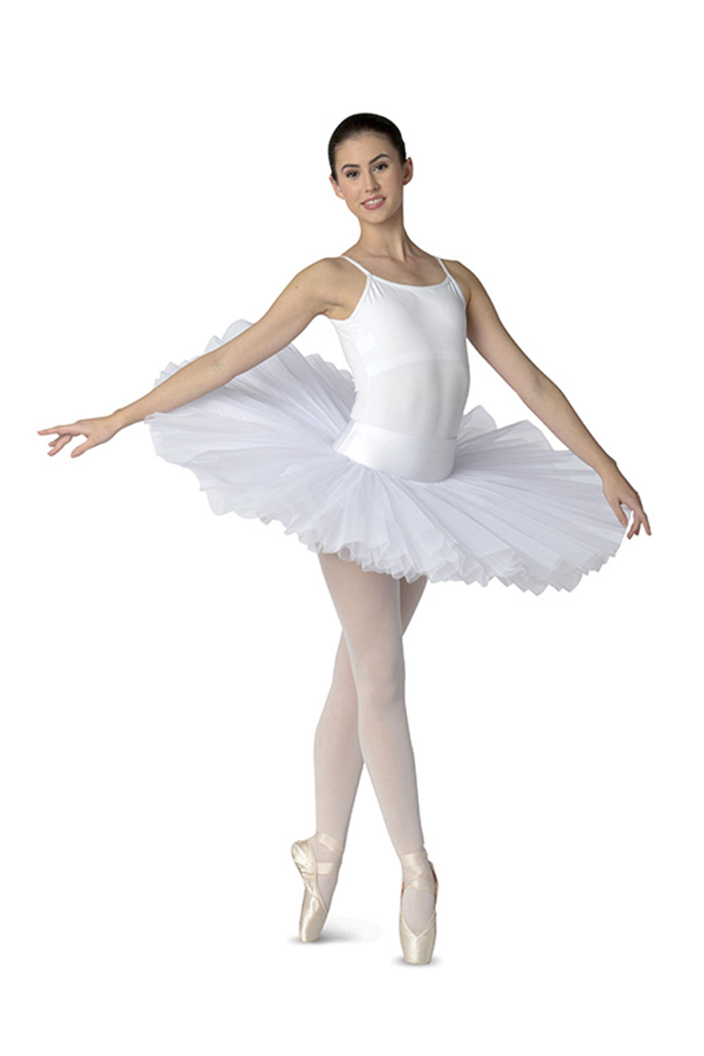 Professional quality platter tutu features 6 layers of permeant pleated netting stitched together for maximum stability.