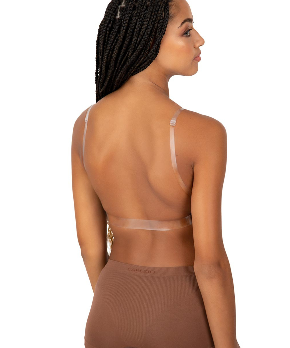 CAPEZIO 3777T GIRLS DEEP NECK CLEAR BACK STRAP BRA