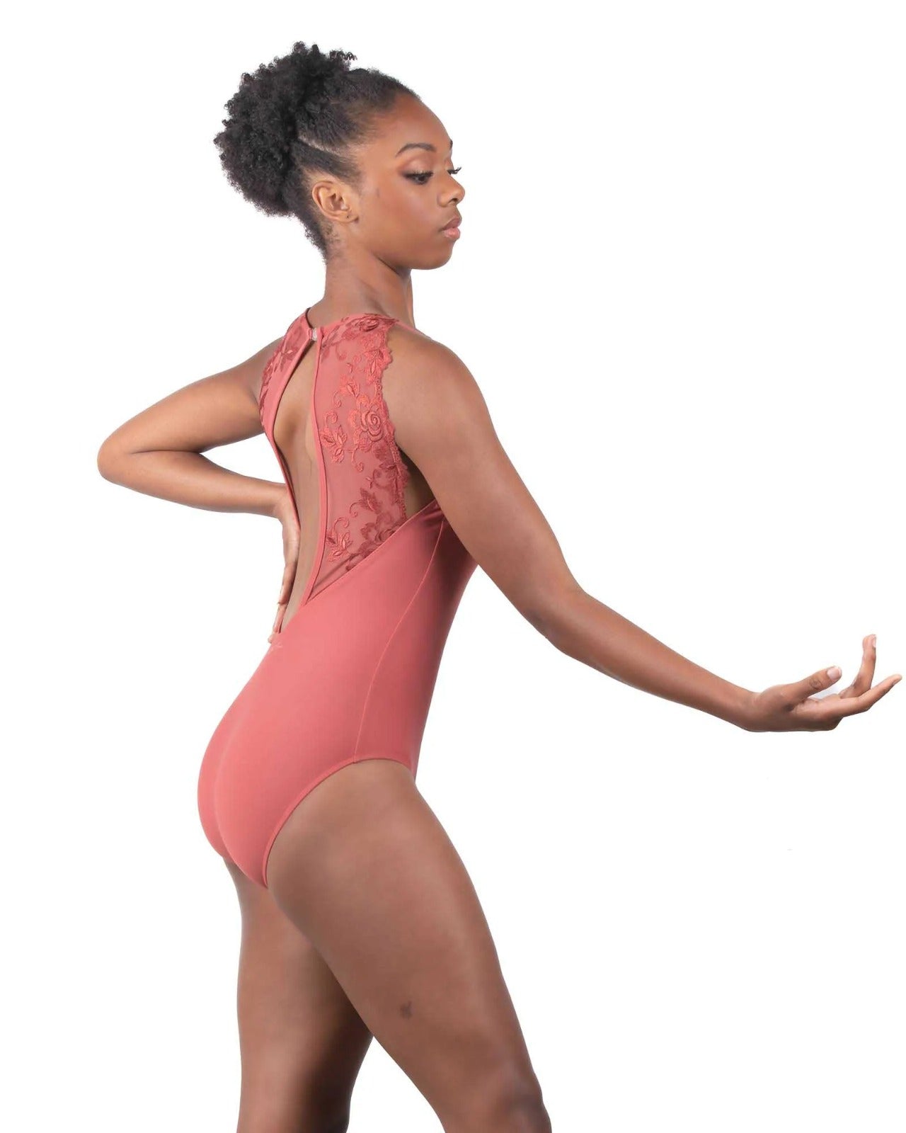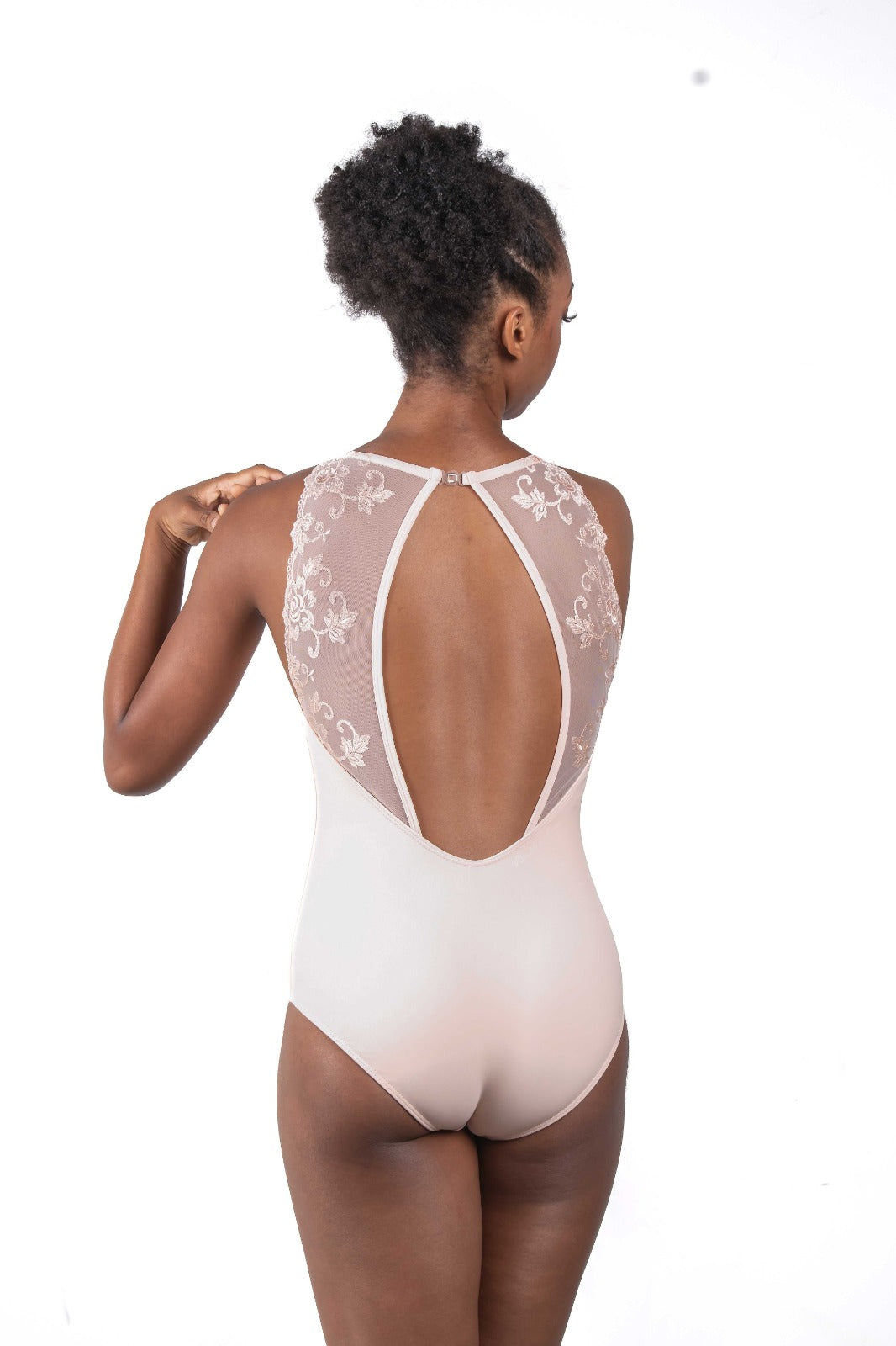 A classy and elegant leotard from Ballet Rosa. We love the delicate lace details and sophisticated key hole opening on the back of the leotard. Designed with super soft matte lycra for ultimate comfort and style as you dance.