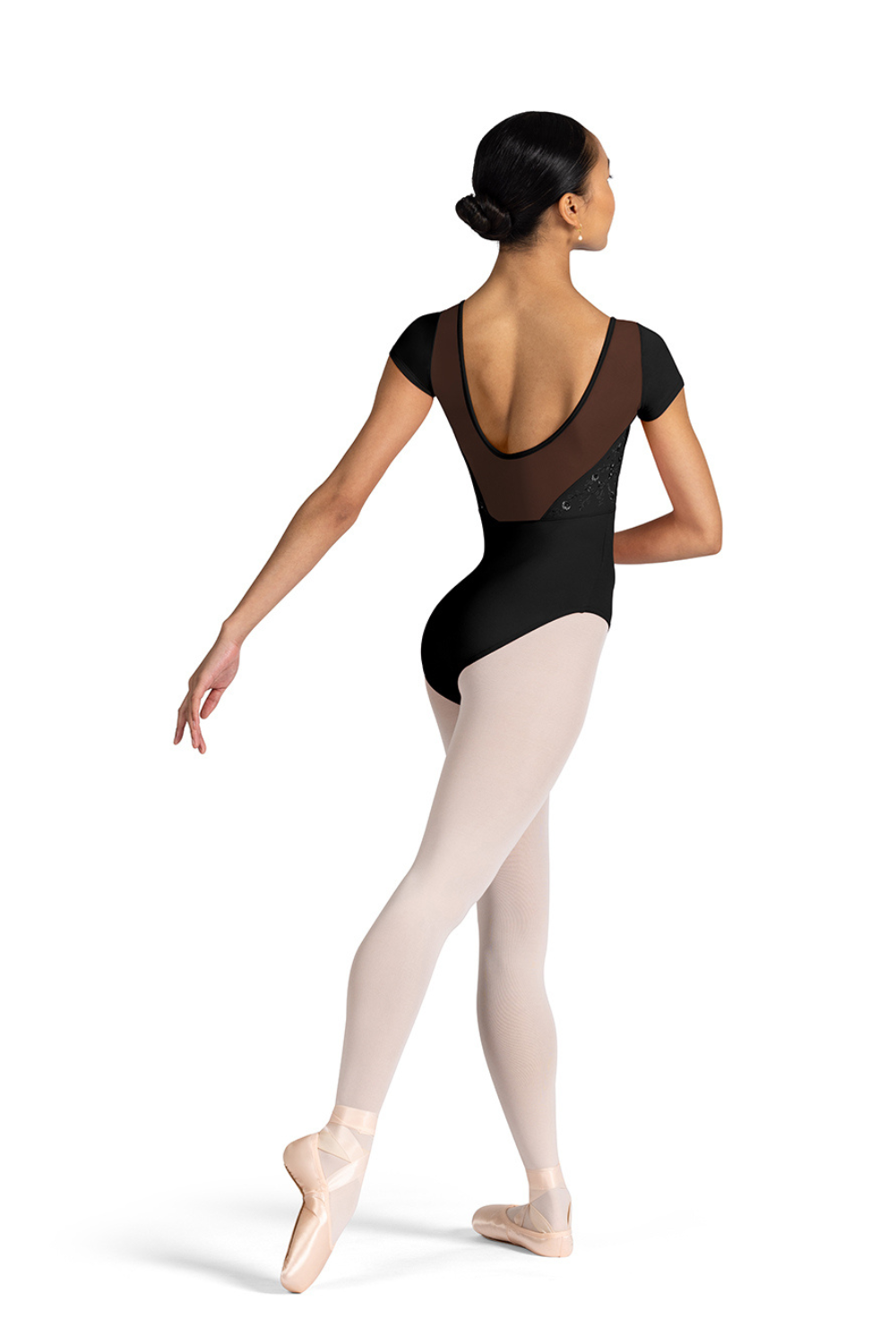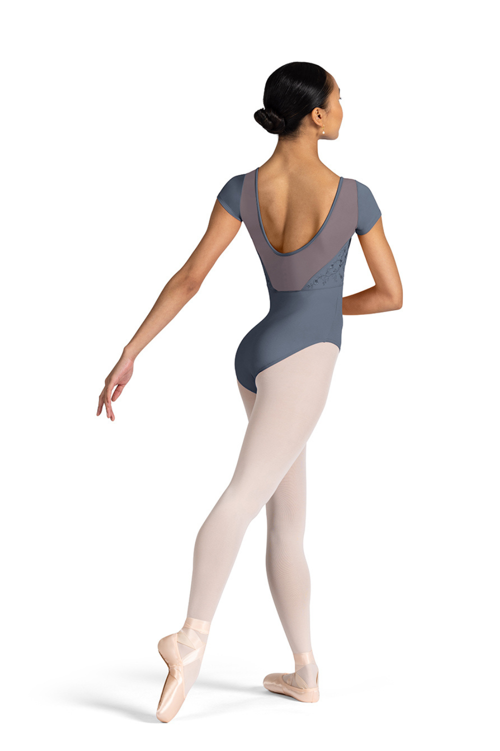 Our Ladies Clea Short Sleeve Leotard features a scoop neckline with a corset bodice design and mesh paneled back and sleeves. Part of our BLOCH Corsé collection featuring beautifully classic corset designs and contouring lace up details, finished in a trio of springtime colors.