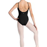 Our Tween Mirella Miami Tank Leotard features a soft mesh back with a low scoop detail, mesh tank straps and intricately braided trim across the neckline and bodice. The tank straps provide a comfortable yet secure fit, allowing for a full range of movement without compromising on style. Part of our Mirella Miami Collection; showcasing intricately braided trims, elegant mesh panels, and golden hardware. The collection boasts a striking palette, injecting South Beach glamour into your dance attire.