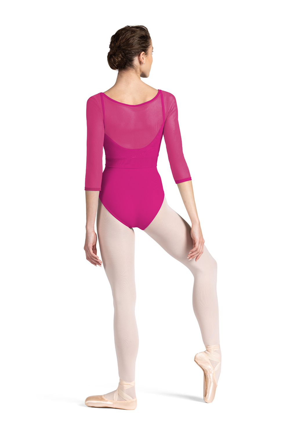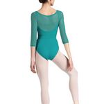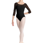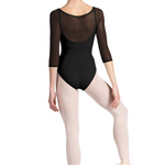 Our Ladies Mirella Miami ¾ Sleeve Top features a classic boat neck with soft mesh ¾ length sleeves and delicate wrap over hemline. Pair with one of our Mirella Miami leotards for your perfect dance ensemble. Part of our Mirella Miami Collection; showcasing intricately braided trims, elegant mesh panels, and golden hardware. The collection boasts a striking palette, injecting South Beach glamour into your dance attire.