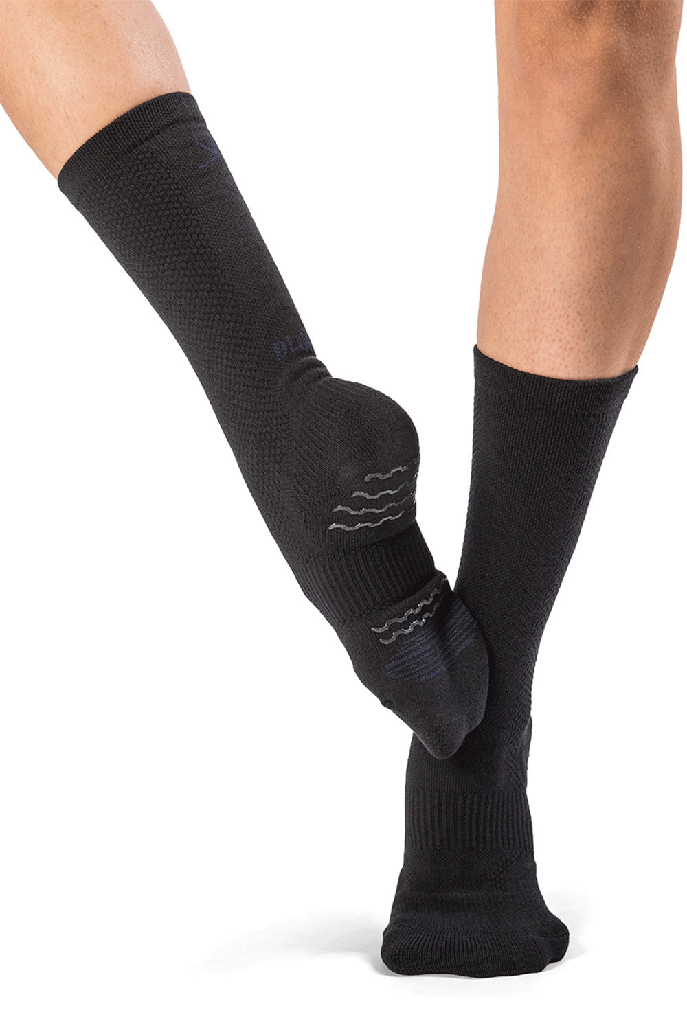 BLOCHSOX™ gives you stability in your turns, support in your jumps and perfection in your lines. A cutting-edge dance sock designed for dancers to push boundaries with equal comfort and support. With innovative features like a built-in spin-spot, brake lines, grip control lines and enhanced compression arch, the freedom to dance with total control is now possible. Smoother turns, jump support and the ability to hold difficult lines are just a few of the benefits dancers can experience.