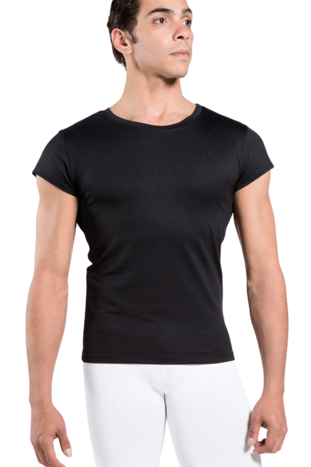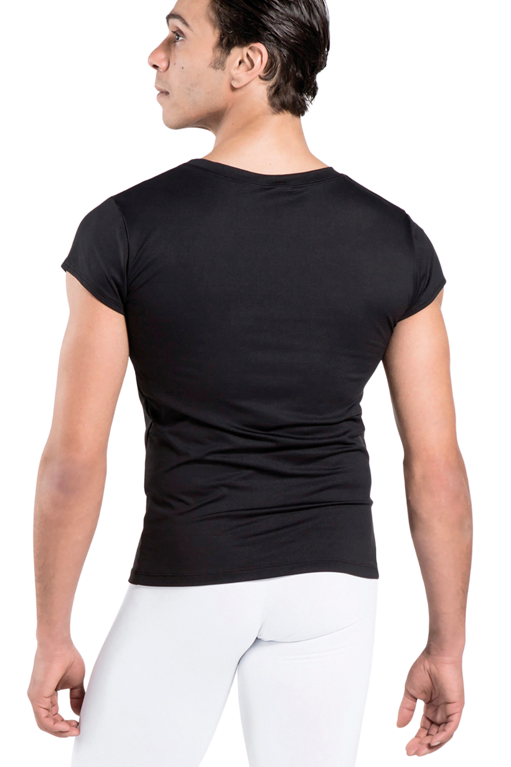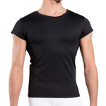 An ideal uniform staple, this crewneck cap sleeve men microfiber shirt is anything but basic.