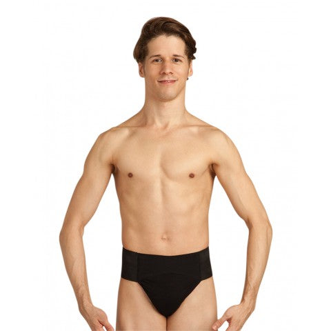 The Men's Quilted Dance Belt is highly recommended for back-to-back studio time. Made of a cotton and spandex blend that is soft and resilient. Features a wide, knit elastic waistband with a quilted cotton front for extra comfort. This thong dance belt will not create harsh lines under layers.