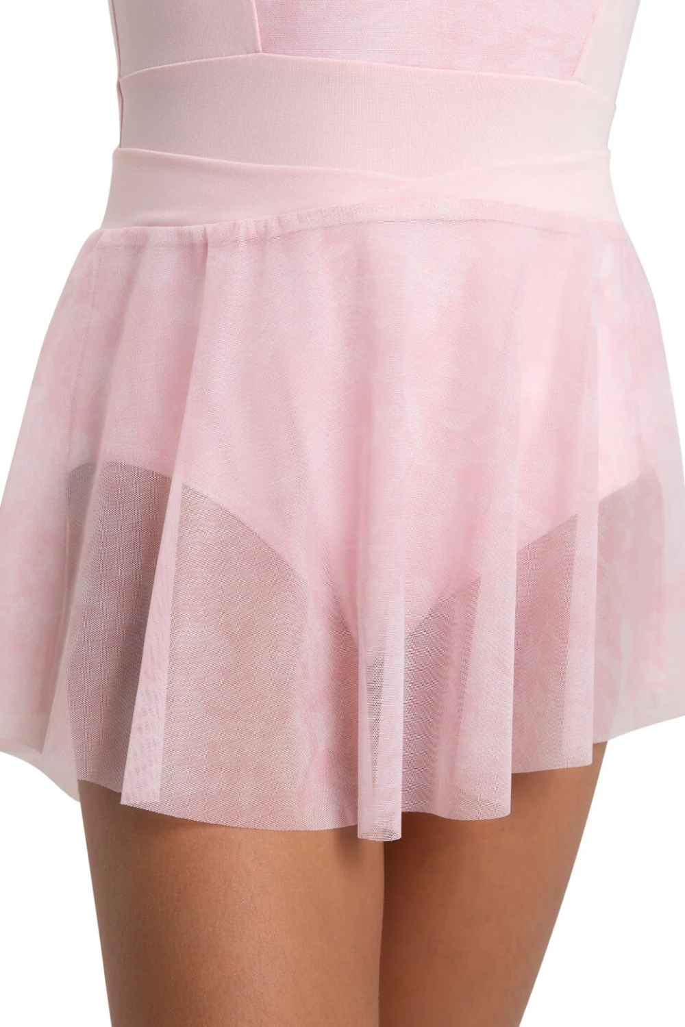 The Songbird Skirt from the limited-edition Jewel Garden collection is a delicate and stylish addition to any leotard. This pull-on skirt features a self-fabric cross-front waistband for a secure fit. The single-layer mesh offers a light and airy feel, perfect for movement. The Lavender, Light Blue, and Pink colorways are elegantly printed, while the Black colorway provides a classic, solid finish. Pairs perfectly with any leotard from the Jewel Garden collection. Available in child sizes only.