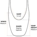 • -New box assembly reducing the length of the stiff part of the vamp slightly