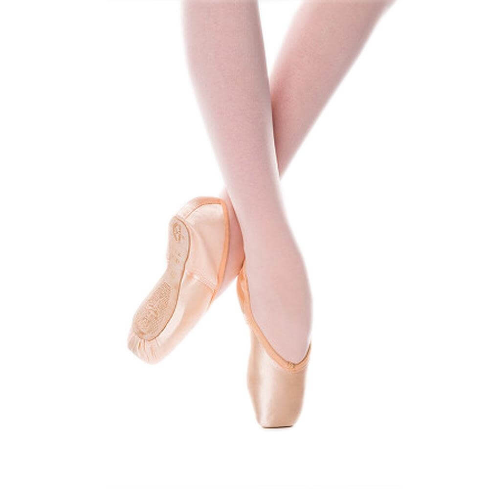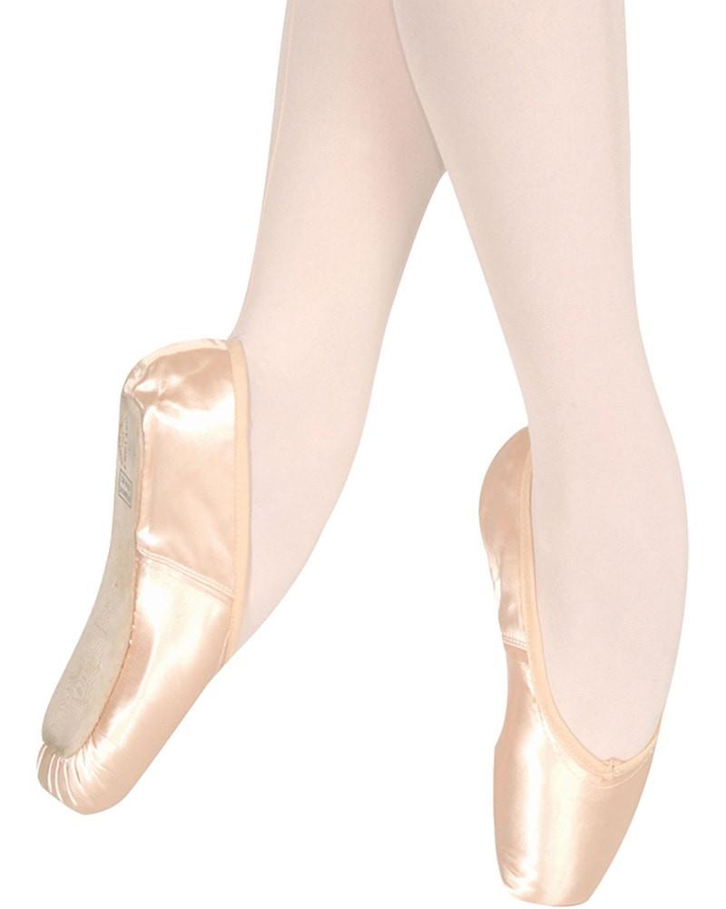 Freed's "Classic Professional" 3/4 shank pointe shoe features a pitched and angled platform for optimal placement and balance, as well as a medium shank. Features a graduated insole design that is strong under the metatarsal and flexible under the heel, an extra deep vamp cut to a slight V shape, and a light wing block. Other features include a flexible demi-pointe, an elastic drawstring, a contoured side, lower back measurements, and a long vamp and stronger box made from biodegradable material creating extended durability. Suitable for experienced pointe work students, who require a more technical shoe. Ribbons not included.