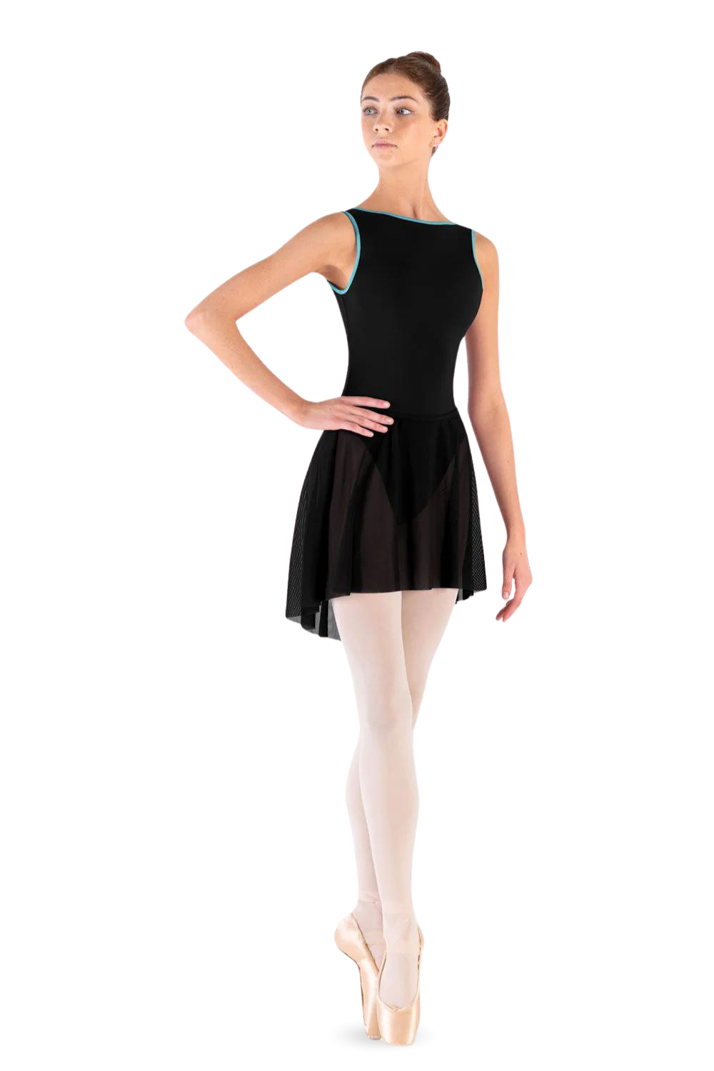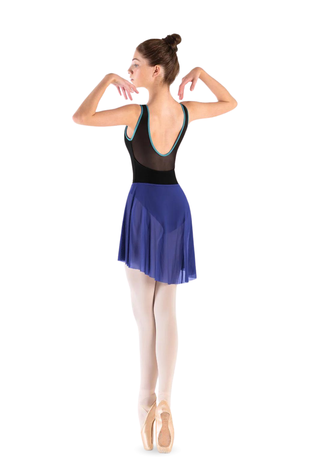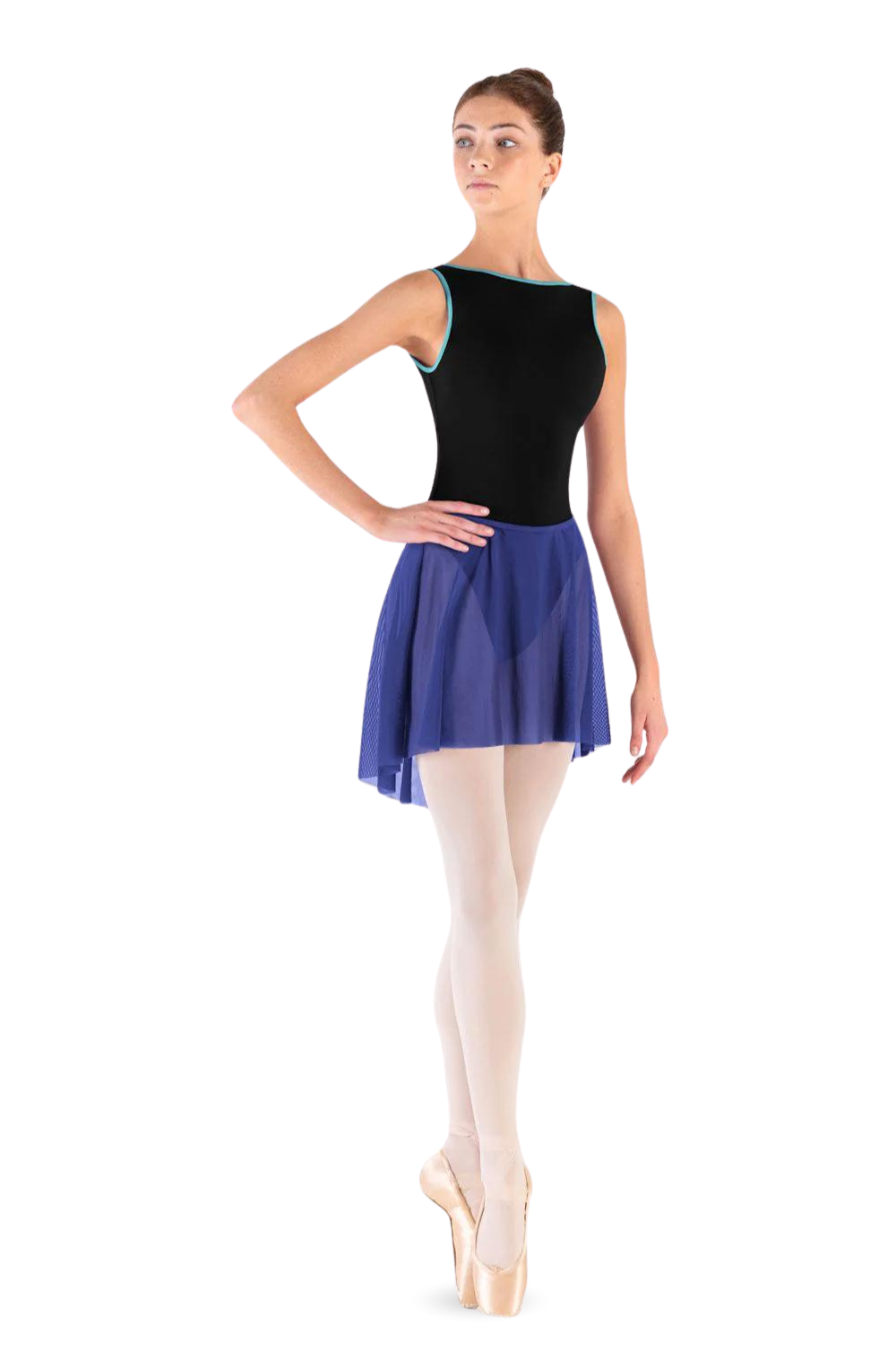 Elevate your leotard with our Ladies Serendipity Mesh Skirt, with a soft and stretchy waistband, this skirt is a comfortable staple for your dance wardrobe. The soft mesh material falls softly on the upper thigh, with a hi-lo hem for added modesty at the back. Discover the magic of our Serendipity Capsule; each piece is an embodiment of unexpected beauty and charm, showcasing elegant contrast piping and delicate sheer mesh panels, drawing inspiration from the silhouettes of classical ballet. Available in 3 luxurious tones.