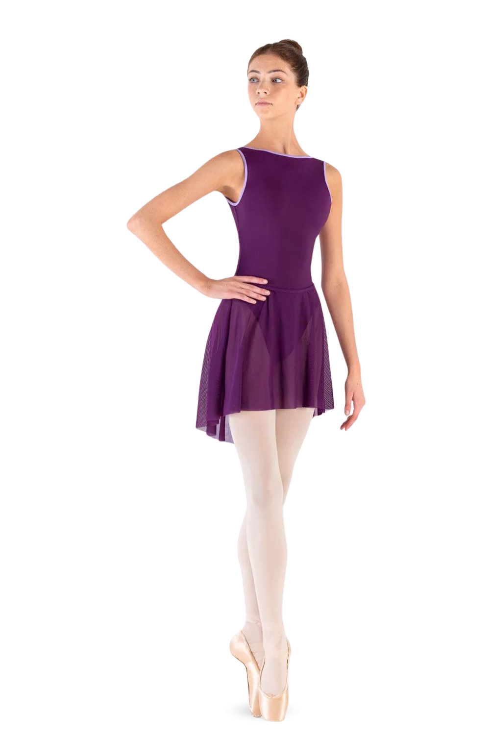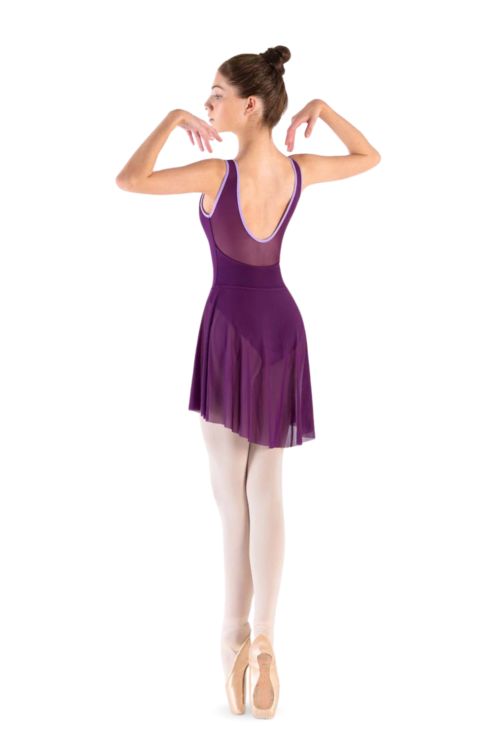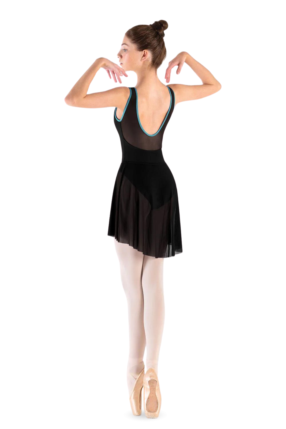 Elevate your leotard with our Ladies Serendipity Mesh Skirt, with a soft and stretchy waistband, this skirt is a comfortable staple for your dance wardrobe. The soft mesh material falls softly on the upper thigh, with a hi-lo hem for added modesty at the back. Discover the magic of our Serendipity Capsule; each piece is an embodiment of unexpected beauty and charm, showcasing elegant contrast piping and delicate sheer mesh panels, drawing inspiration from the silhouettes of classical ballet. Available in 3 luxurious tones.