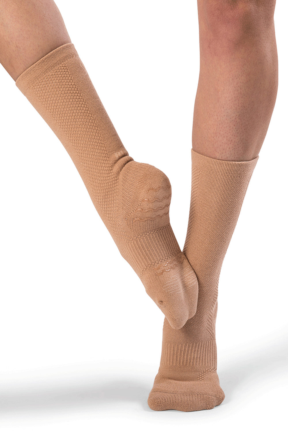• Double welt compression cuff: Not only will the sock stay up on a dancer’s leg, it is designed with the right amount of stretch and compression for a natural fit