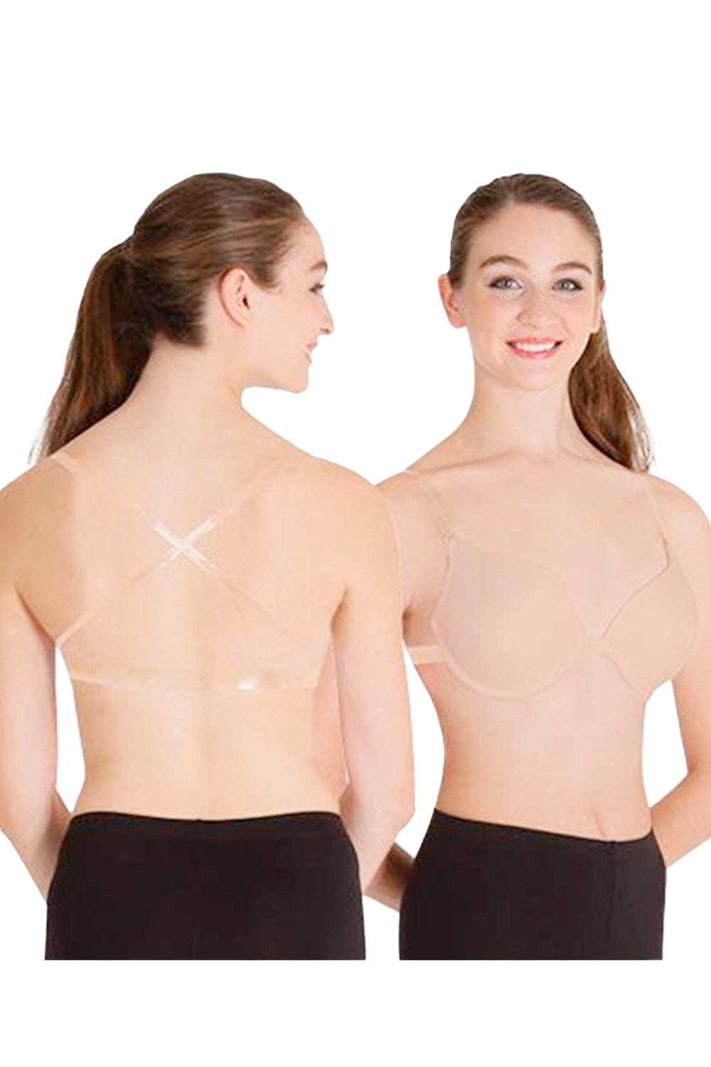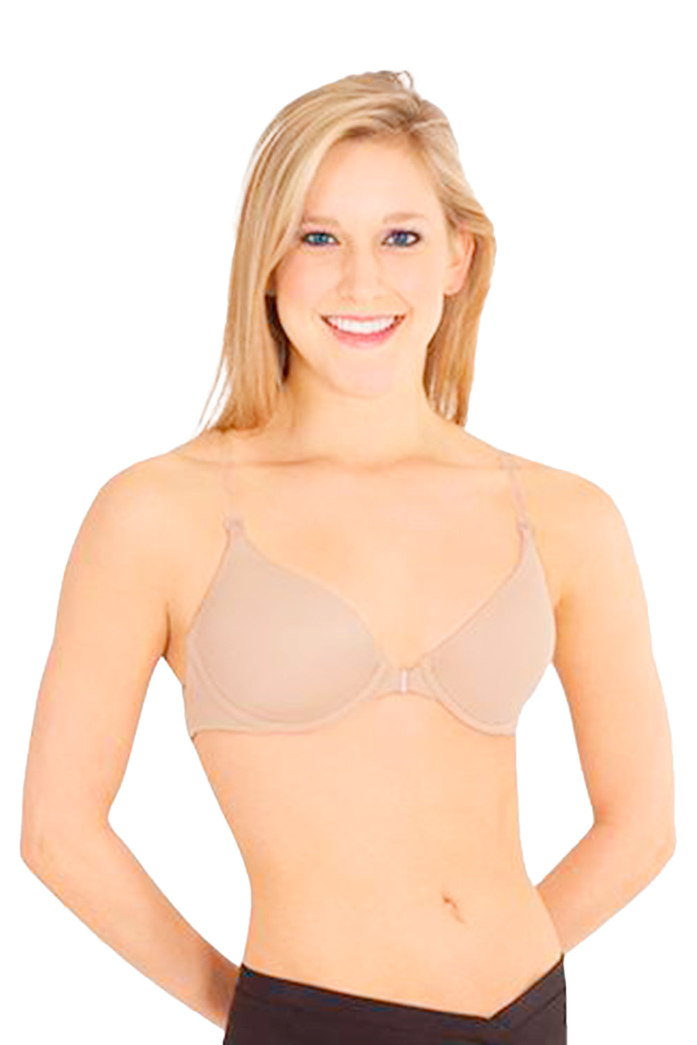 This best-selling underwire padded bra with front opening features a clear back strap and shoulder straps for a bare look.