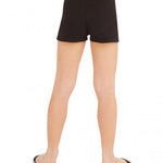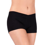 Boost energy into your dancewear collection with the Boy Short. This best-selling boy short is made of a soft cotton and stretch spandex combination. Overlapping v-front waistband will add a fun touch to your dancer's style.