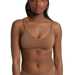 Slip on our best-selling Clear Back Bra for seamless support under active wear. Features a detachable, clear back strap that will avoid outfit clashing. Made of a nylon and spandex blend that is soft and moisture wicking. The anatomical contouring adds shape and creates a smooth profile under layers.