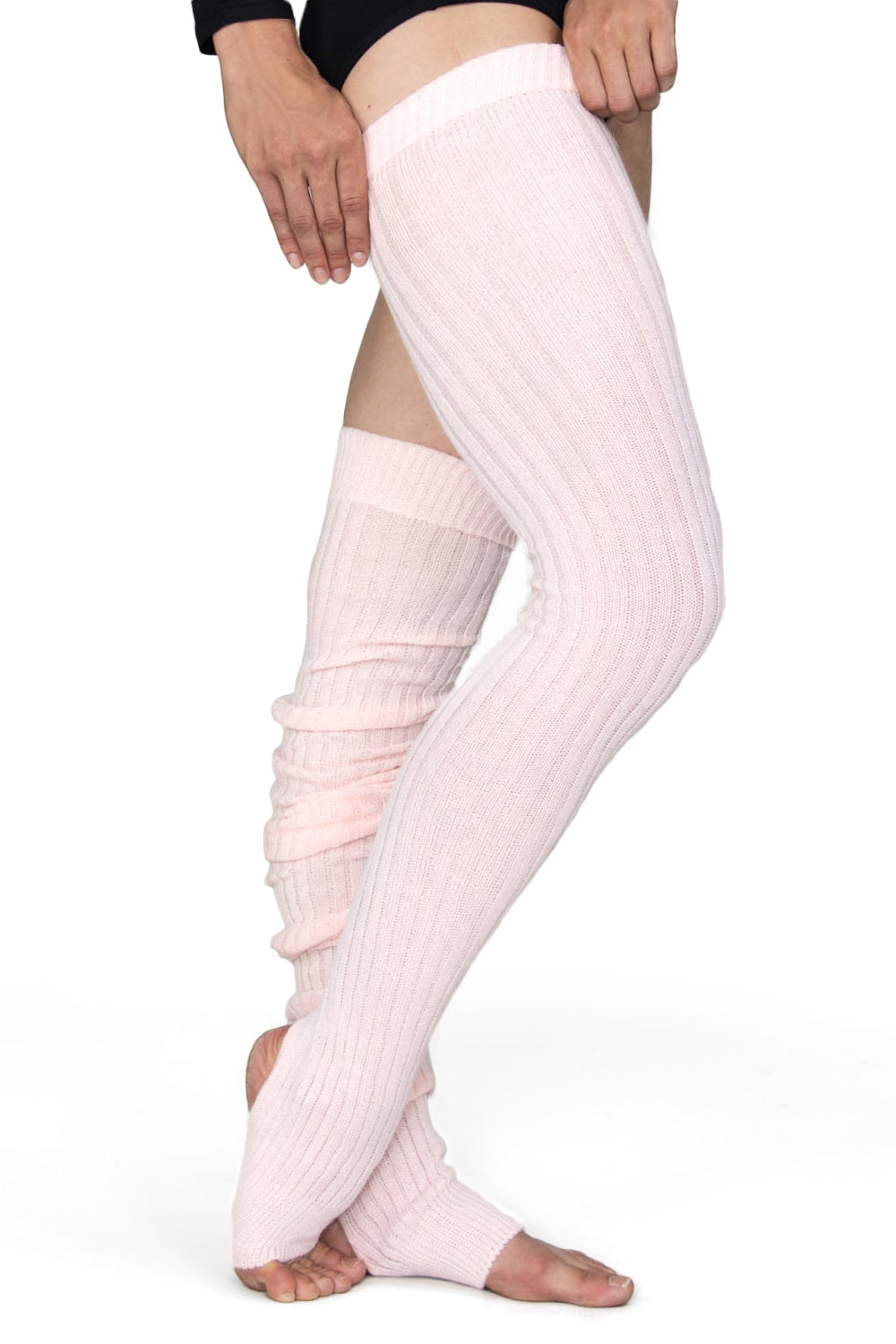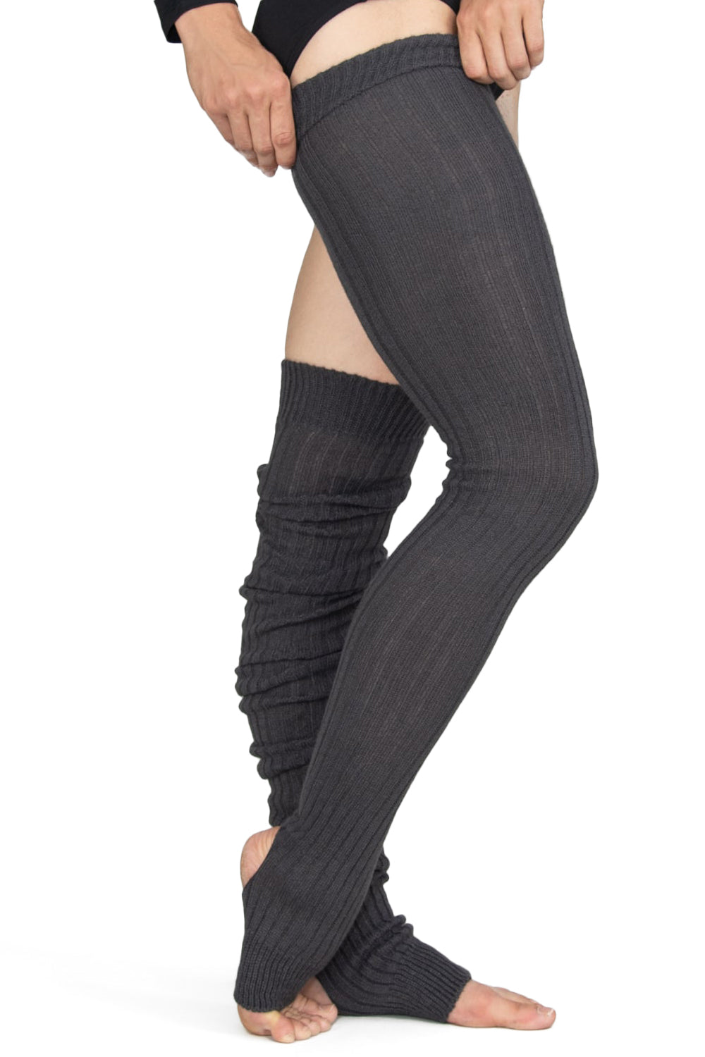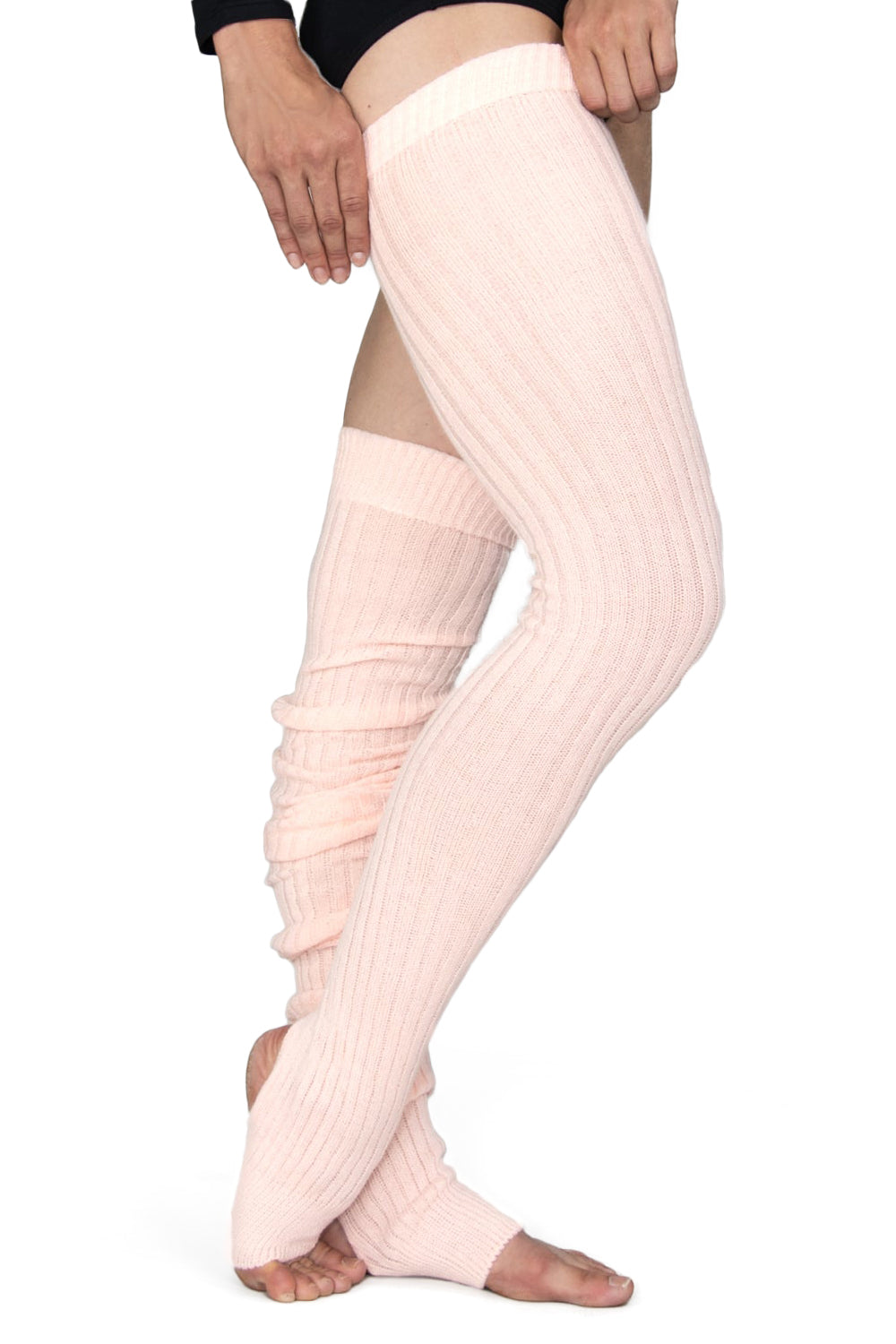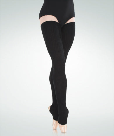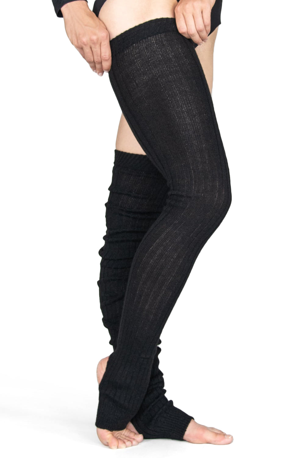 Soft, practical extra long leg warmers with open heel and soft touch feel.