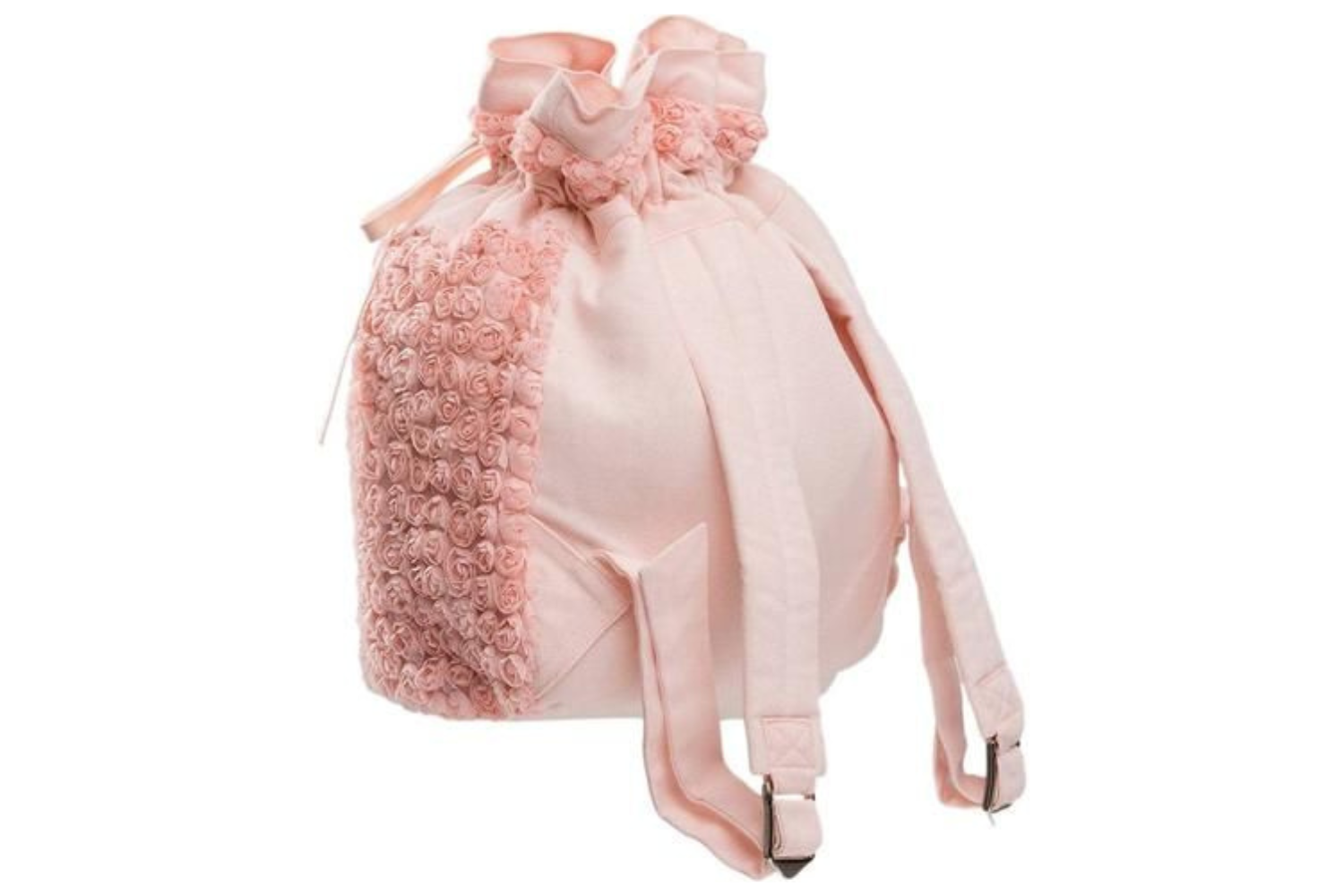• Rose tulle mesh embroidered canvas backpack dance bag by Wear Moi.