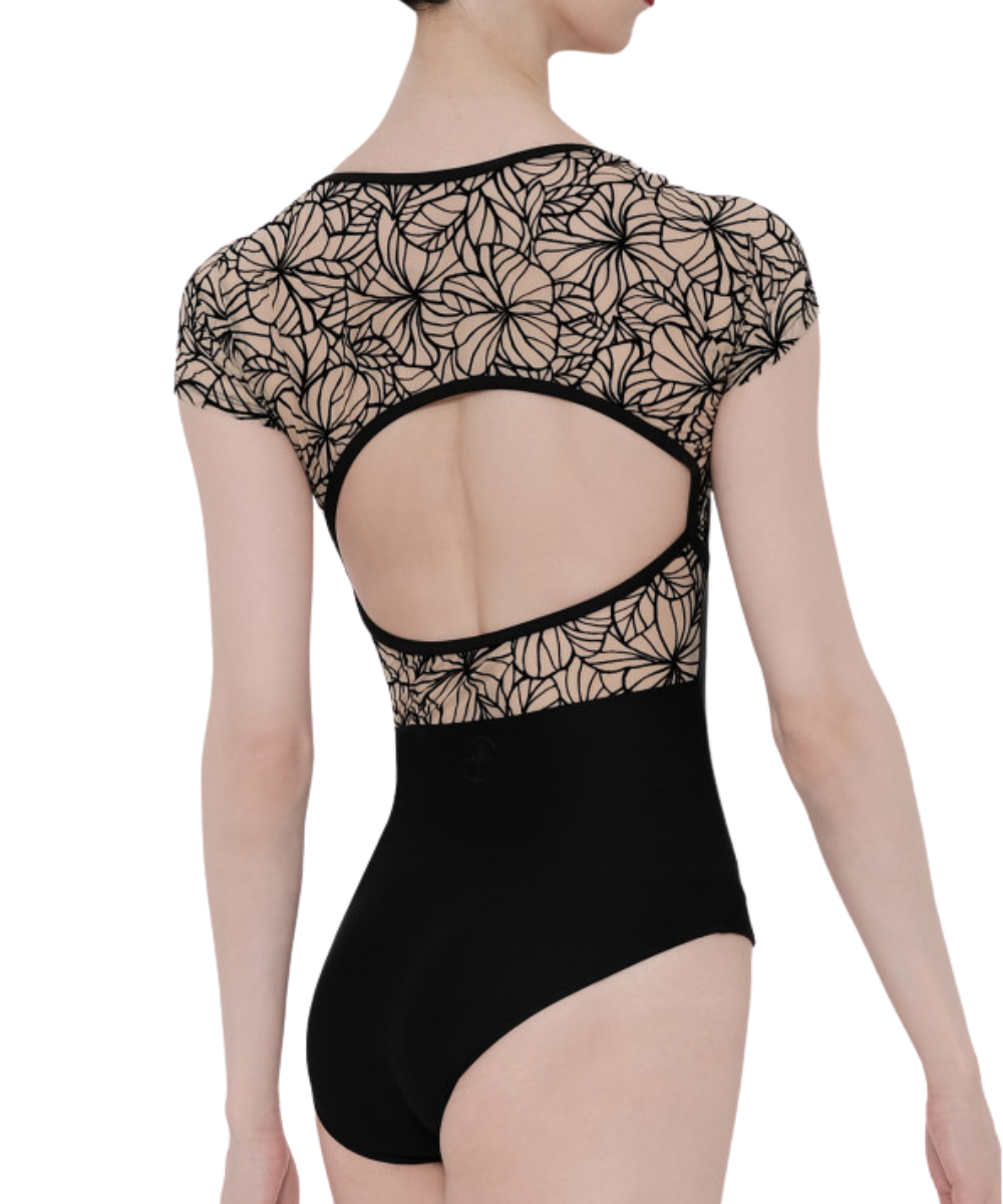 WEAR MOI HIBISCUS WOMEN MICROFIBER OPENWORK YOKES CAP SLEEVE LEOTARD